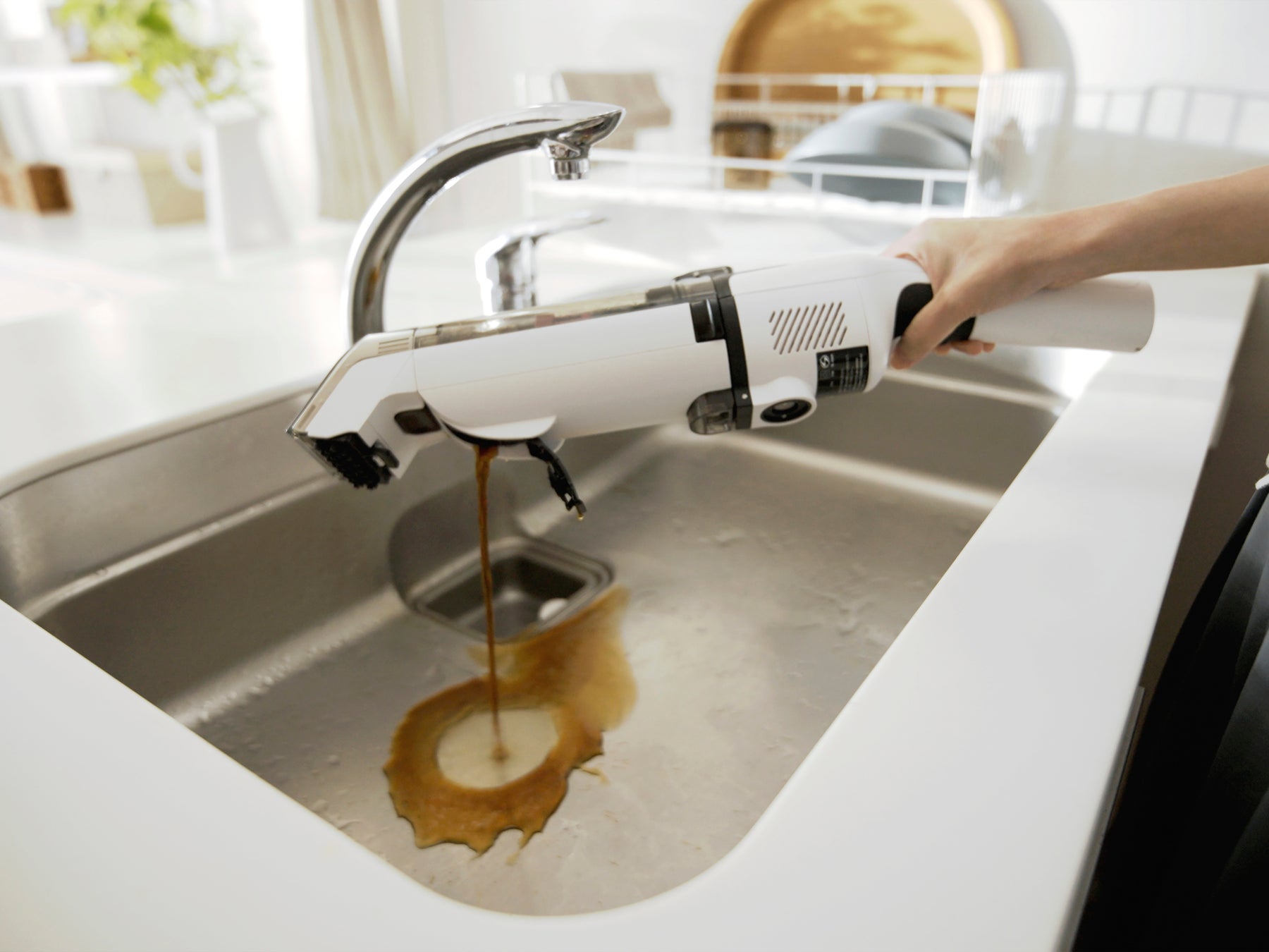 ペットの毛や微細なゴミもしっかり吸引し、ゴミと汚水をタンク内で分離するのでお手入れが楽です。また、汚水タンクや各種パーツは水洗い可能で衛生的です。