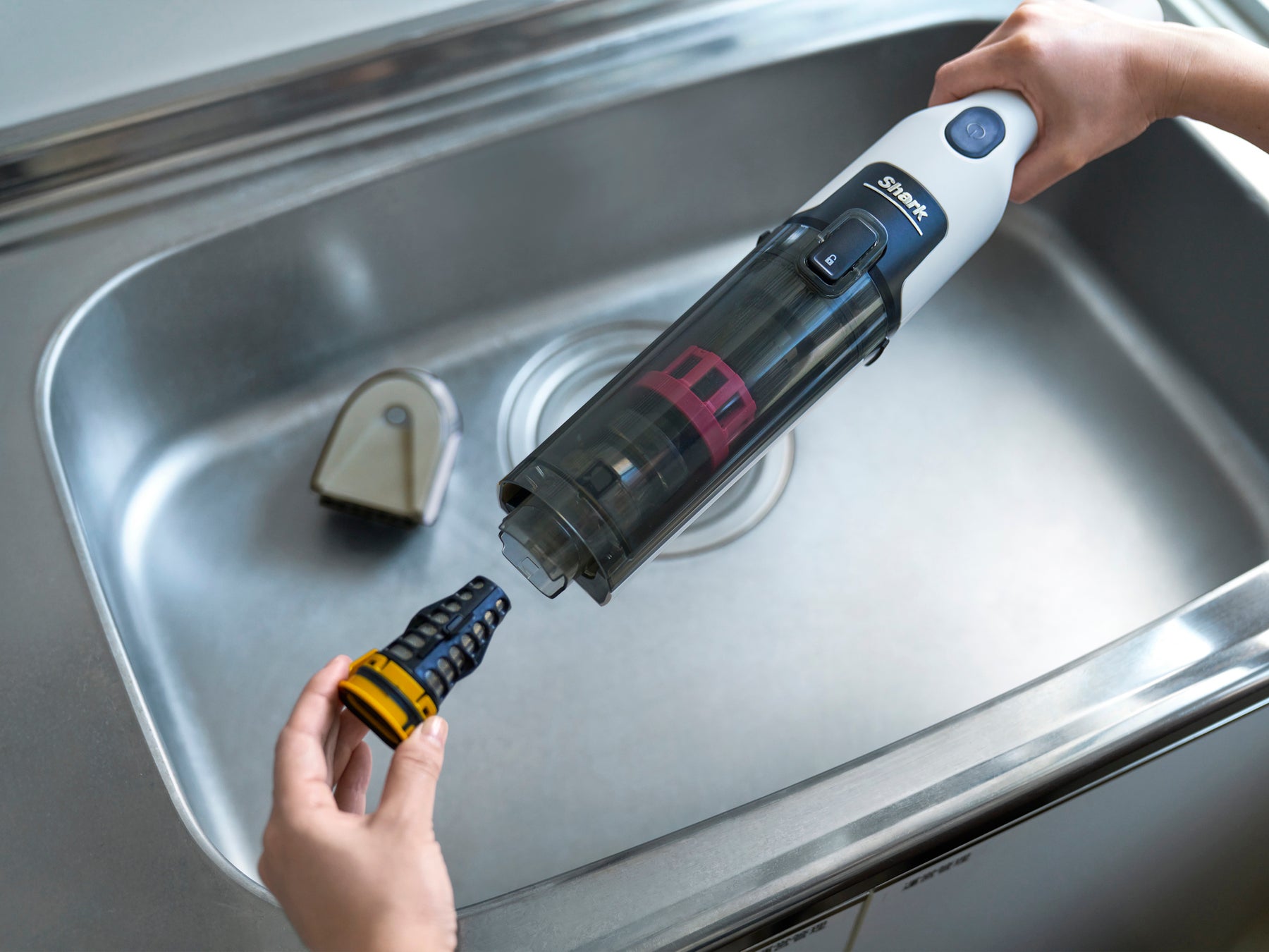 「あっ!」と思った瞬間 強力吸引で、サッとシミ取り。液体汚れに サッと使えるコードレスハンディ型シミ取りクリーナー「Shark® StainForce コードレスシミ取りクリーナー」新発売
