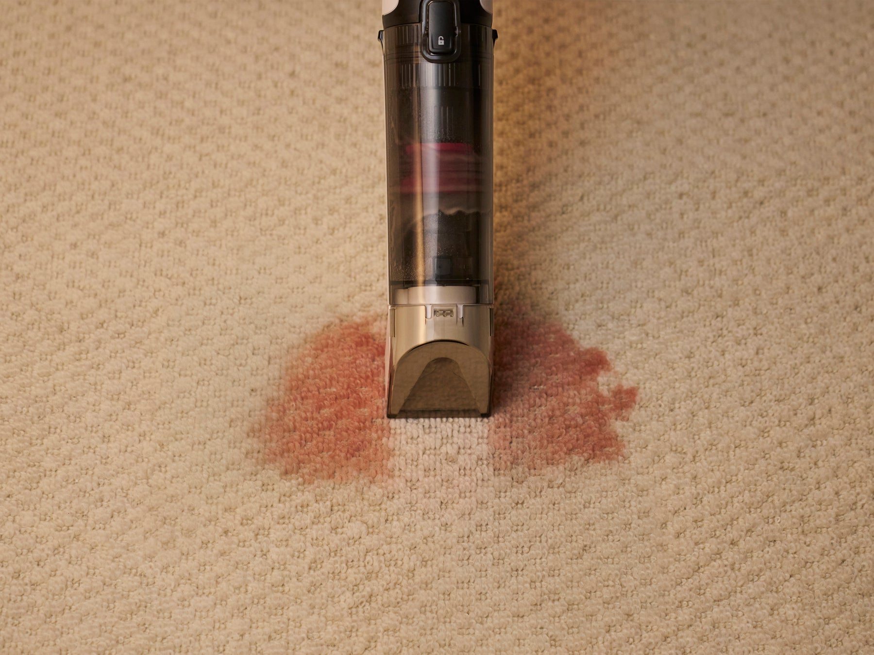 本製品は、カーペット・ラグ、布製品用のコードレスシミ取りクリーナーで、当社としてコードレスシミ取りクリーナーの日本での製品展開は本製品が初となります。ハンディ型なので、急な液体汚れでもサッと取ってサッと使えるのが特長です。パワフルなモーターで、汚れや水分が繊維に入り込む前にしっかり吸引します。