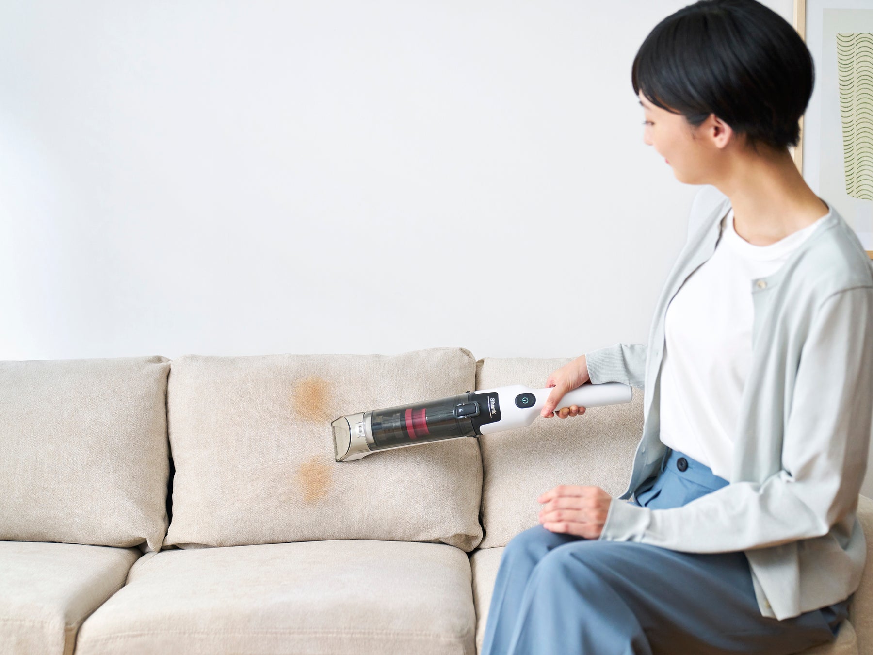 こぼした時にサッと手に取りサッと使えるコードレスハンディ型なので、急な液体汚れでも繊維の奥まで浸透してしまう前に対応ができます。
