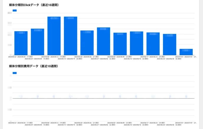 レポートページでは、期間別、媒体別、キャンペーン別などさまざまな切り口で分析できます。