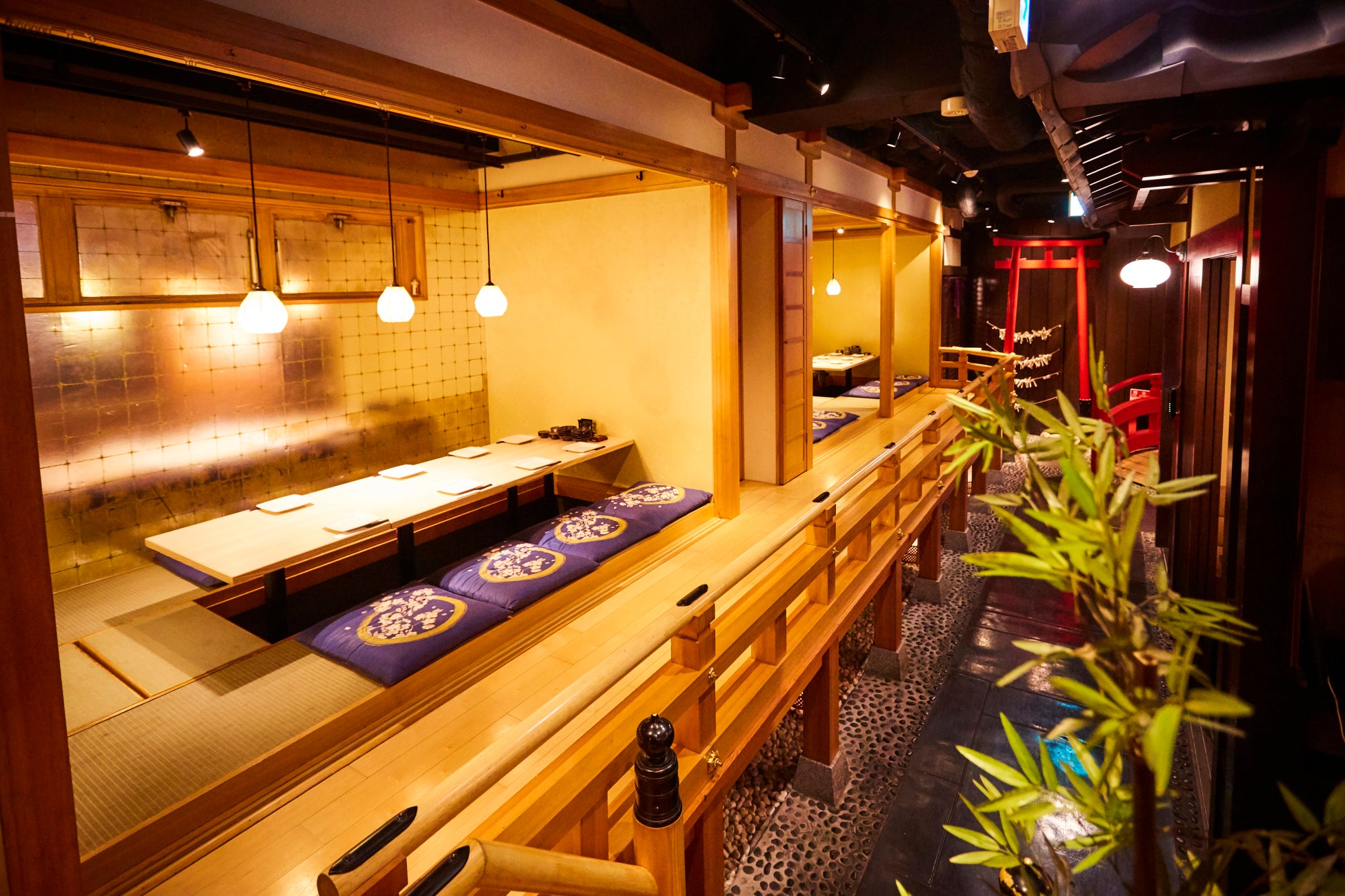 店内はお座敷掘り炬燵タイプのお席もございます。最大50名様の同時着席も可能ですのでこれからの時期、忘年会や新年会をはじめとした会社宴会などにもおすすめです。