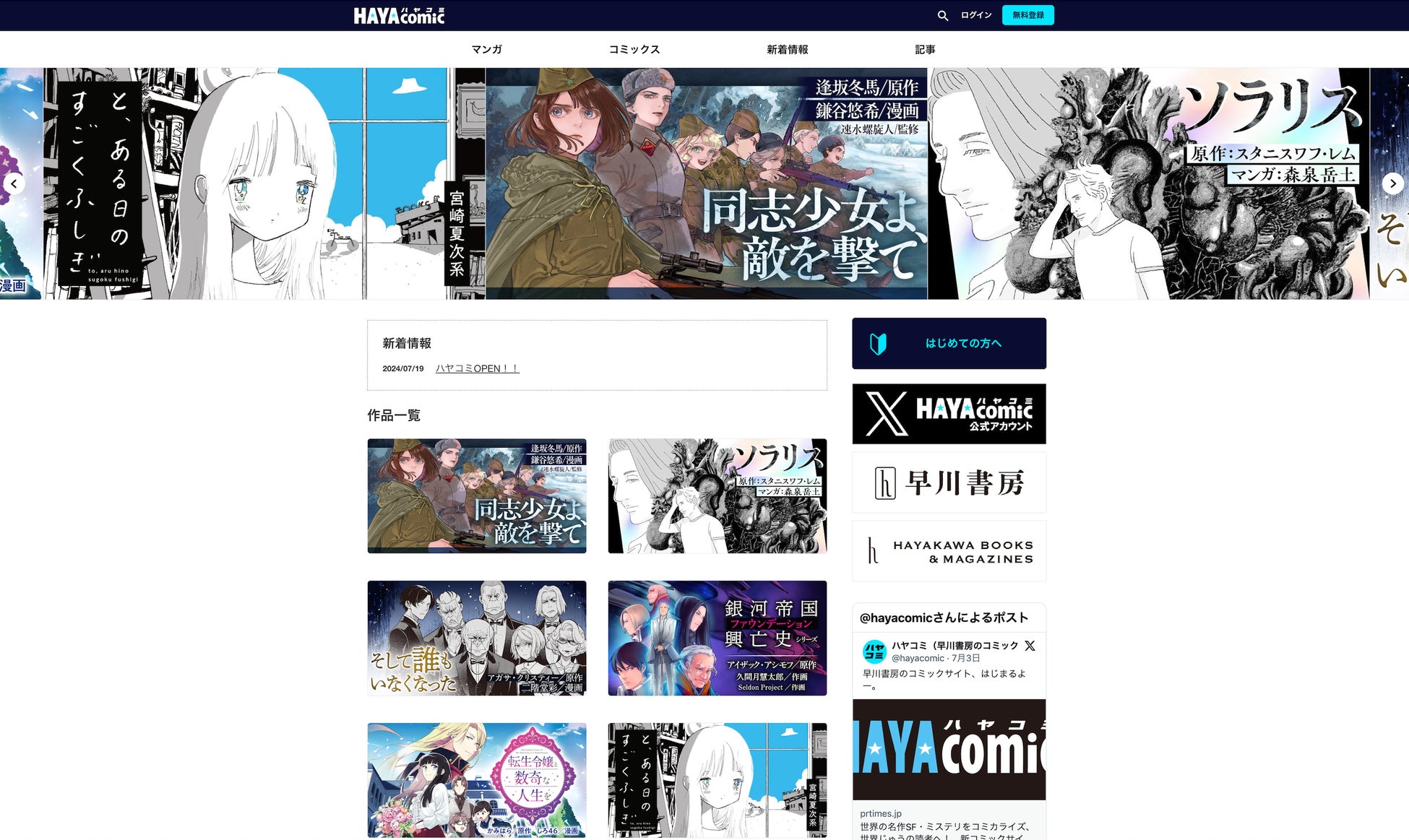 2024年7月23日より、株式会社コミチは、株式会社早川書房の新コミックサイト「ハヤコミ」のリリースに伴い、出版社・ウェブトゥーンスタジオ向けマンガSaaS「コミチ+」導入と、サイト運営支援を提供します。