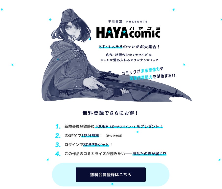 世界の名作『そして誰もいなくなった』『ソラリス』、本屋大賞受賞の『同志少女よ、敵を撃て』などをコミカライズ、「ハヤコミ」リリース!システムは「コミチ+」!
