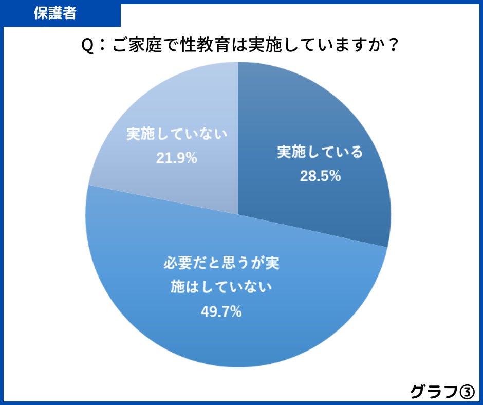 家庭での性教育は「必要だと思うが実施していない」「実施していない」保護者が7割。