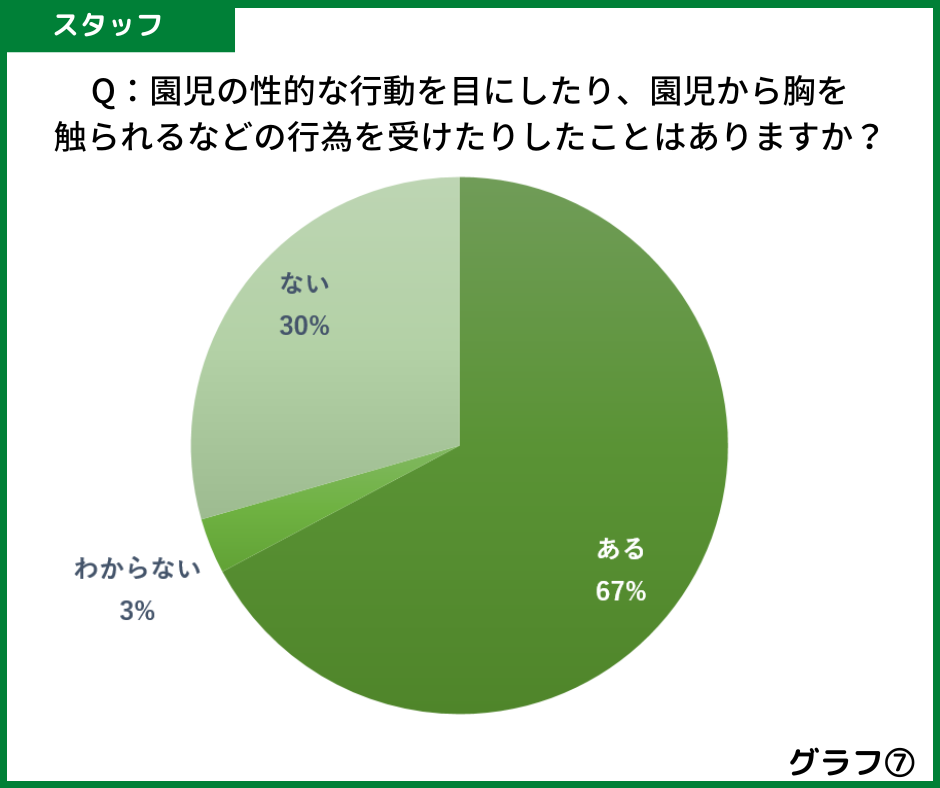スタッフの約7割が児童の性的な行動を目にしたり、児童から胸を触られるなどの行為を受けたことがあると回答。