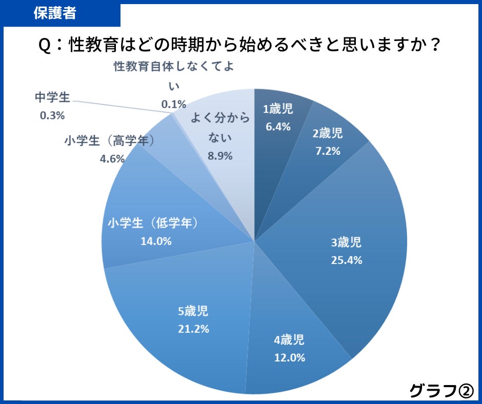 保護者の7割以上が性教育を「未就学児の時期(0歳児から5歳児の間)に始めるべき」と回答。