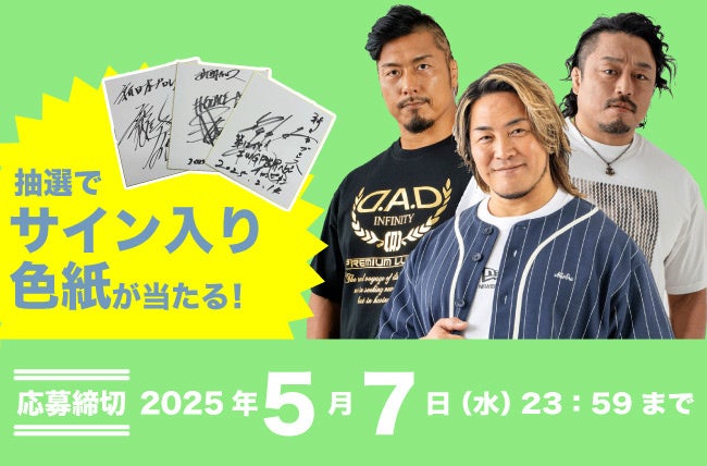 2025年4月16日(水)から5月7日(水)まで【カタログ発刊記念】対象商品をご購入で、計6名様に新日本プロレス 棚橋弘至・後藤洋央紀・鷹木慎吾のサイン色紙が当たるキャンペーンを開催