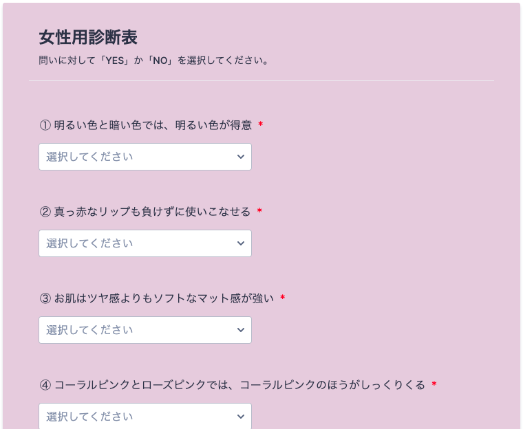 今回登場した春の新色5種類を含め、診断方法や内容を改良いたしました。