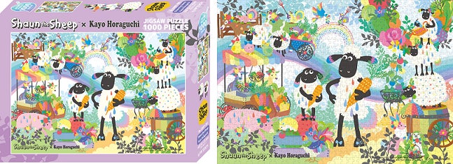 鮮やかな色と個性的なデザインで、ファンタジックな世界観を表現する人気グラフィック・アーティスト ホラグチカヨさんのタッチで描かれたカラフルなショーンと仲間たちのイラストが、大迫力の1000ピースジグソーに。