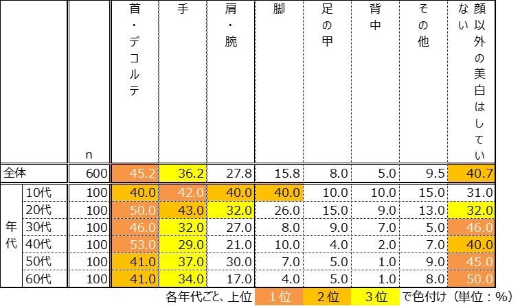 60%が、顔以外のパーツも美白