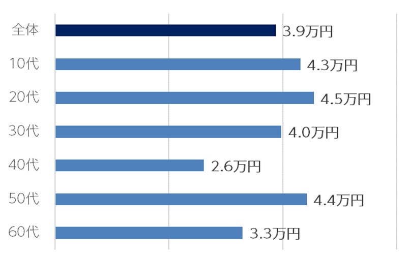 40代は2.6万円と最も少額。20代とは2万円近い差がある