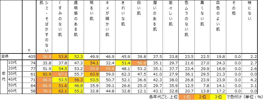 美白で目指す「〇〇な肌」年代で違い。10代は白さ、20代はキメ、30代以降はシミ