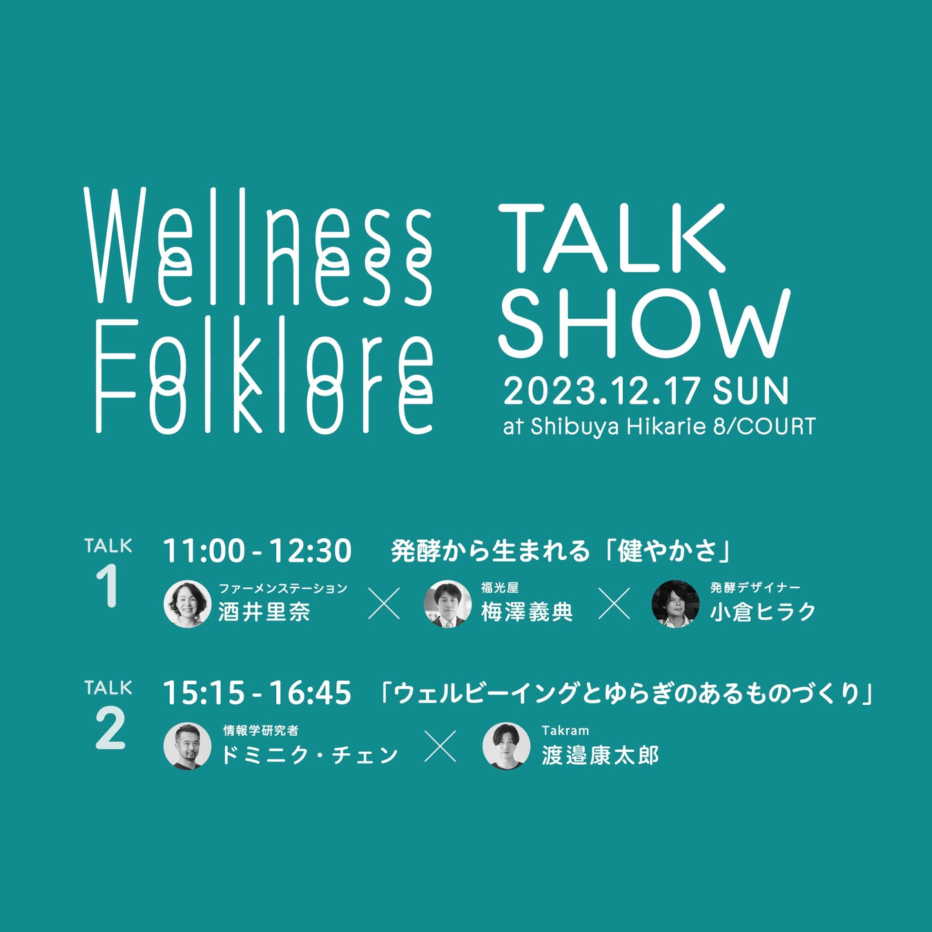 関連のトークイベントとして、「ウェルビーイング」や「発酵と健やかな美しさ」をテーマにしたトークショーと、出展者による座談会を、COURTで開催します。
