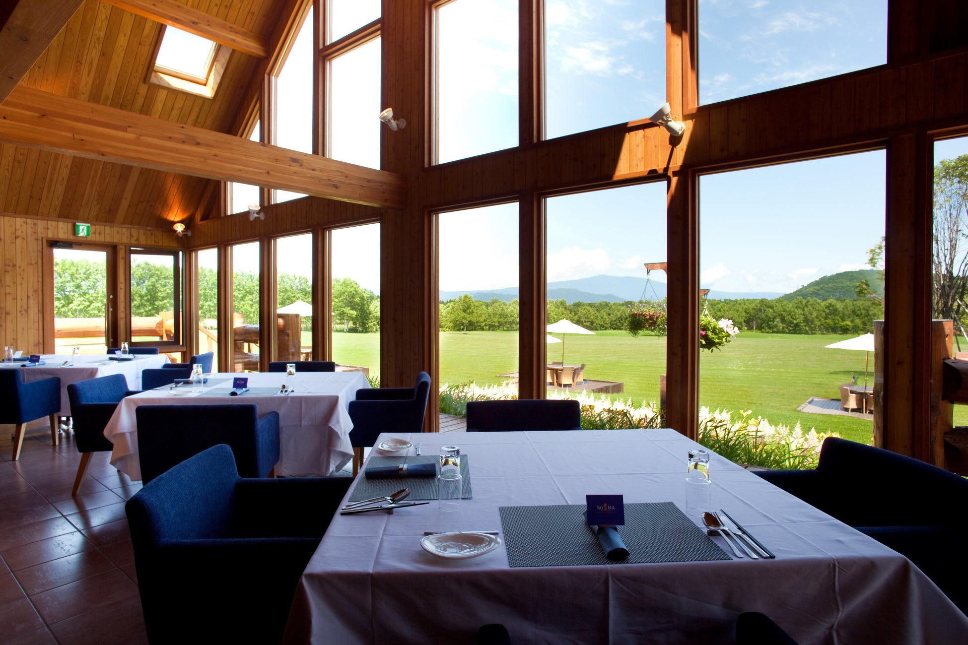ひがし北海道の素材を中心とした滋味あふれる洋食コースは、ランチ・ディナーでの日帰りやご宿泊でご利用いただけます。昼は天窓から降り注ぐ陽射しと目の前に広がる緑豊かな景色とともに、夜は館内に灯された柔らかなキャンドルの灯りに包まれて、満点の星空とともにいただくコース料理をお愉しみいただけます。