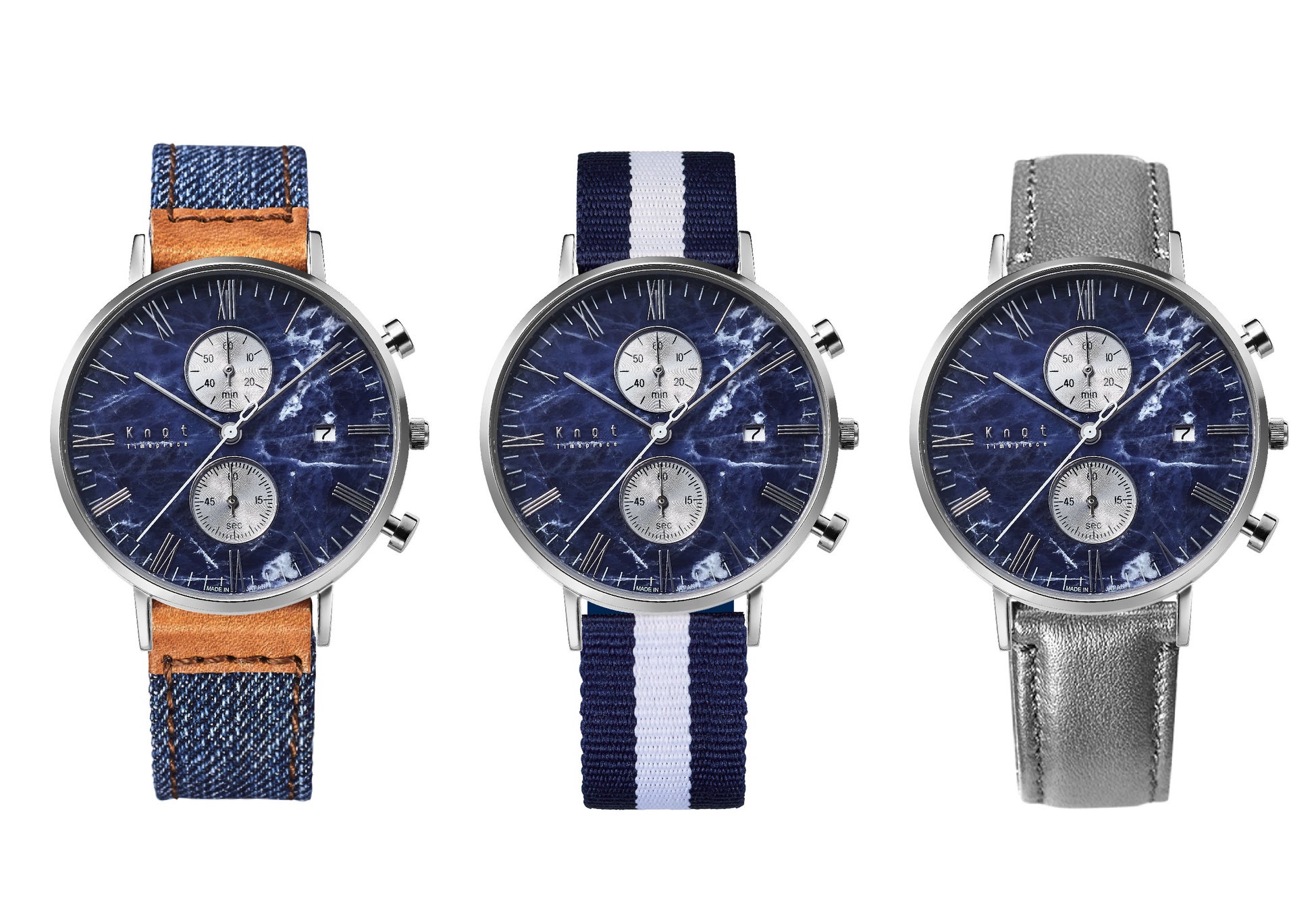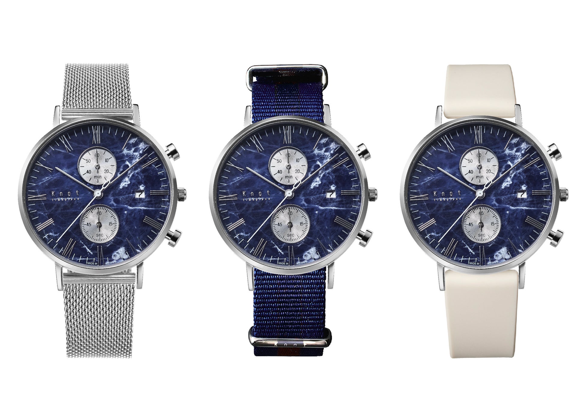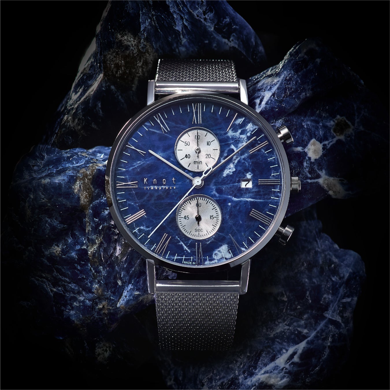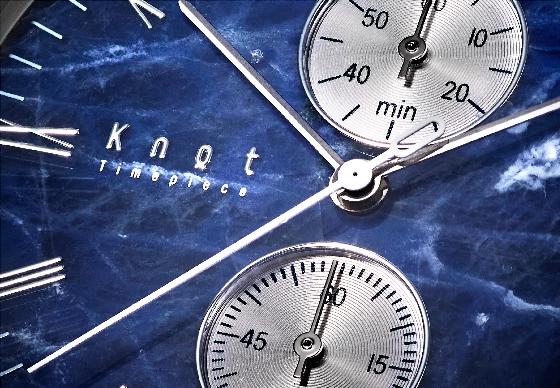 クラシカルなローマンインデックスには立体的な加工を施し、石の模様と重なっても読みやすいのもポイントです。Knotで人気のクラシックシリーズからストップウォッチ機能付きのクロノグラフ(https://knot-designs.com/c/collection/watch/chronograph)をベースにした限定コレクションです。