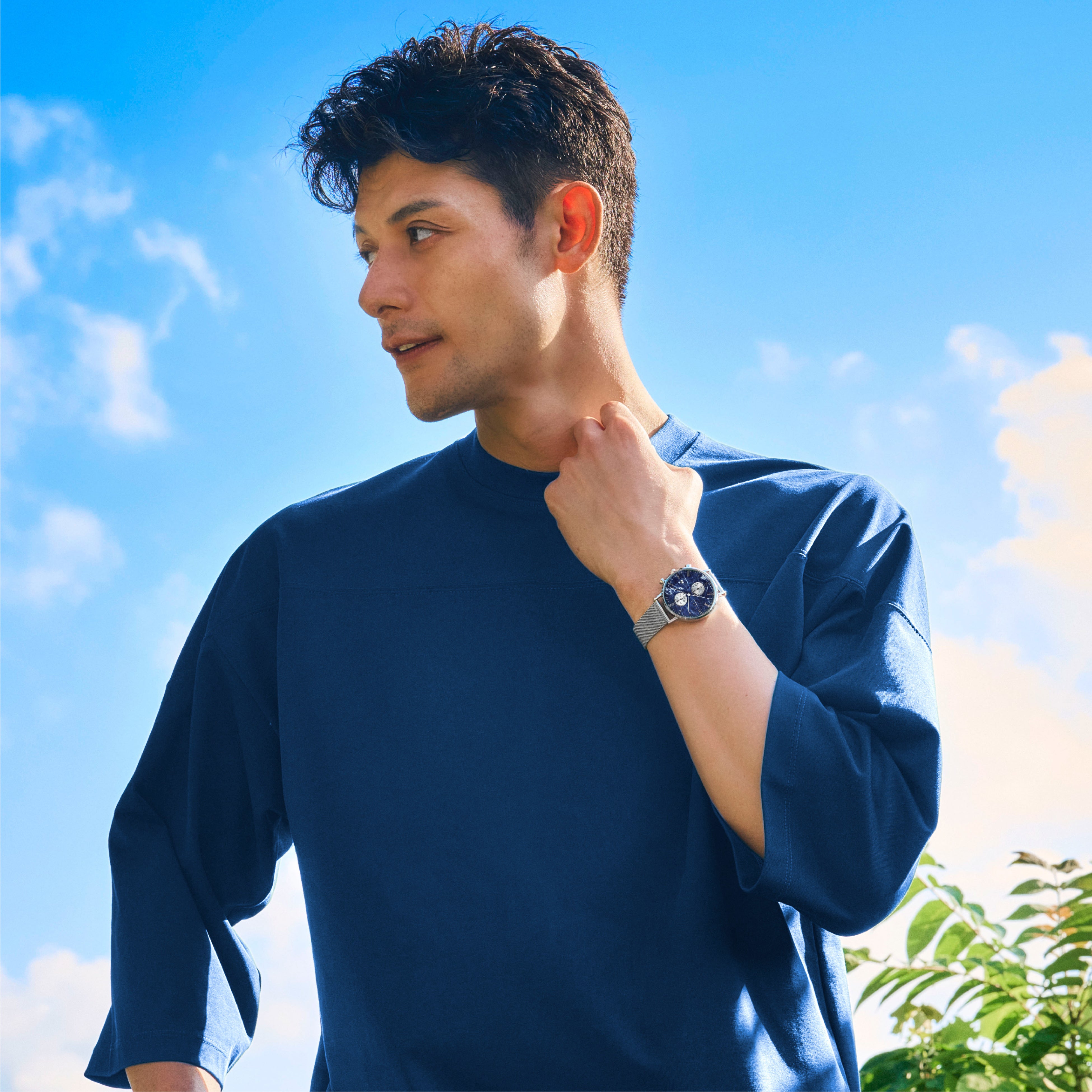 ケース・針・インデックス・インダイヤルは全て夏の強い日差しを感じさせるようなシルバーで統一。
