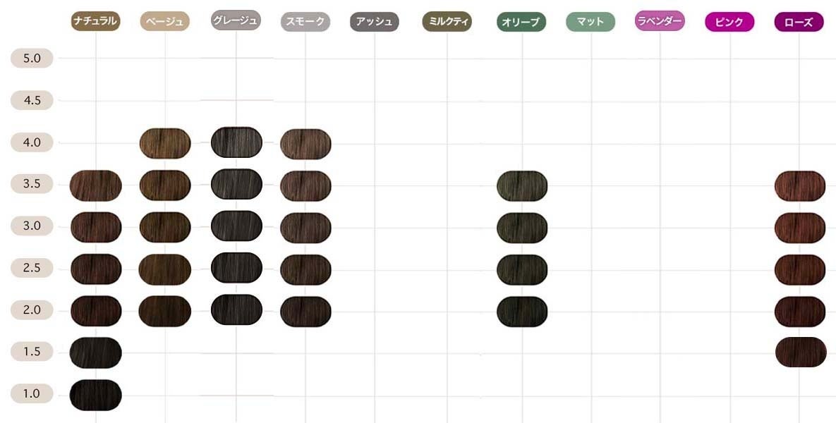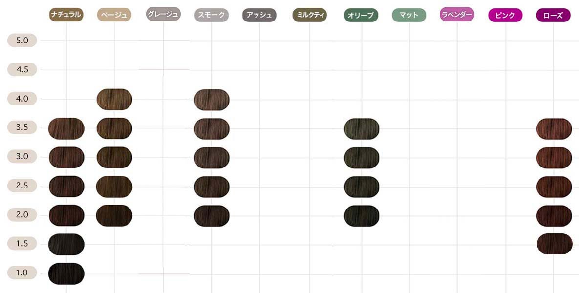 グレージュは、仕上がりの希望や好みに合わせて、5種類の明るさからお選びいただけます。