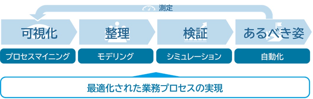 わたしたちは、企業が生産性を向上し、競争力を高めてビジネスチャンスを創出するためには継続的に業務プロセスを見直し、最適化を図るべきであると考えます。そのためには、業務の可視化、整理、あるべき姿を描いた上で最適なソリューションを選択し、システムを実装、連携させる必要があります。また継続的な効果検証と改善活動も重要です。これら一連の流れ(可視化、整理、あるべき姿)をシームレスに叶えるトータルソリューション(プロセスマイニング、BPMモデリング、シミュレーション)が、多くの実績を持つBPMプラットフォームのパイオニア「Software AG ARIS」です。