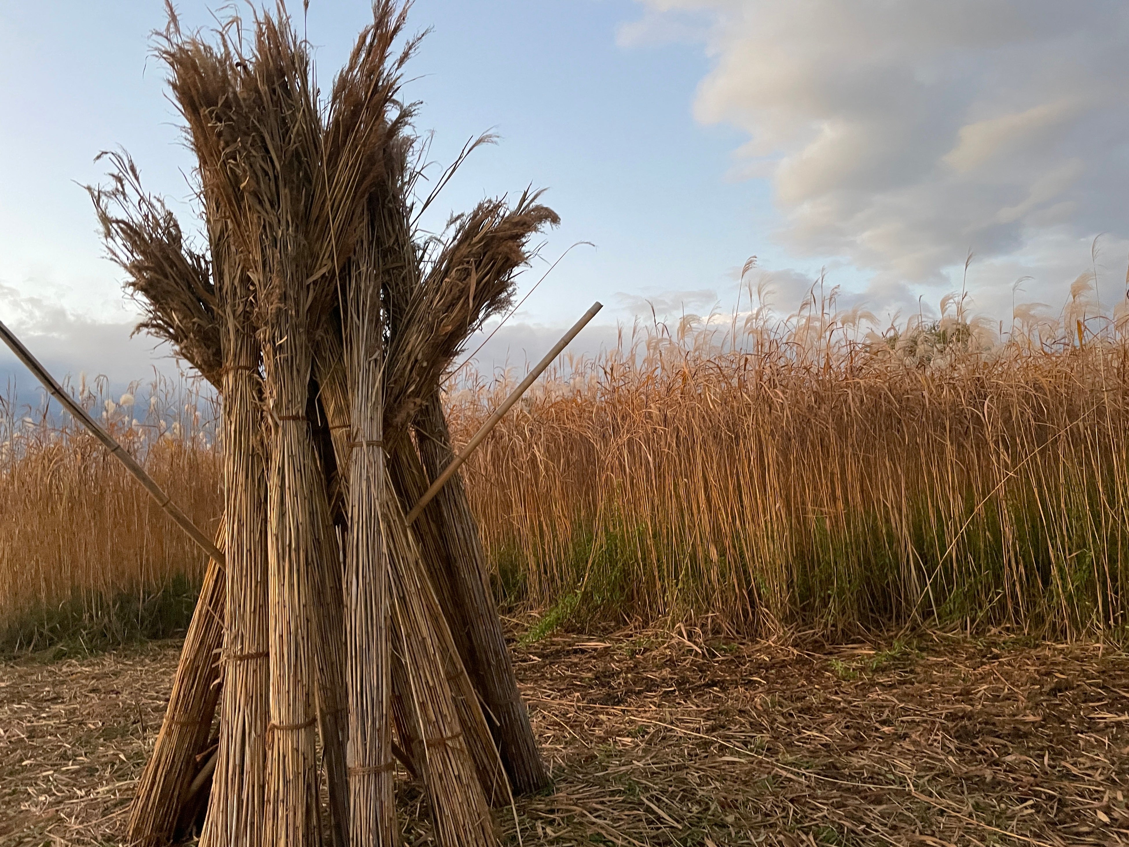 たまゆらではヨシ原を守るために循環の仕組みとして、ヨシを原材料とした生地をユニフォームに用いるなど、ヨシに新たな産業価値を与えてヨシ原を守る「ヨシプロジェクト」を推進しています。
