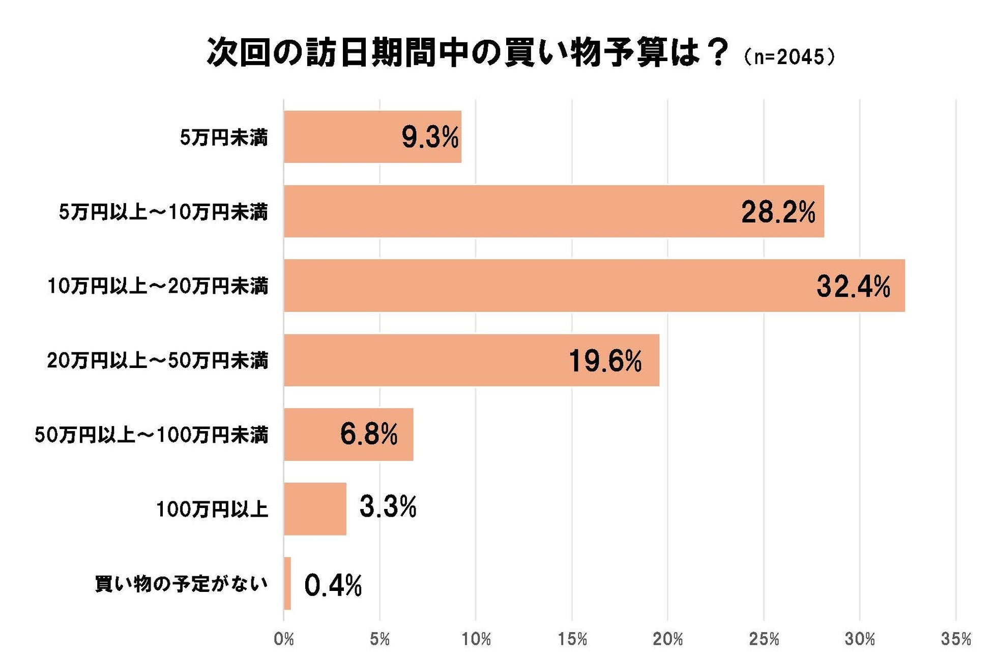 調査結果③次回の訪日期間中の買い物予算 1位「10万円以上~20万円未満」