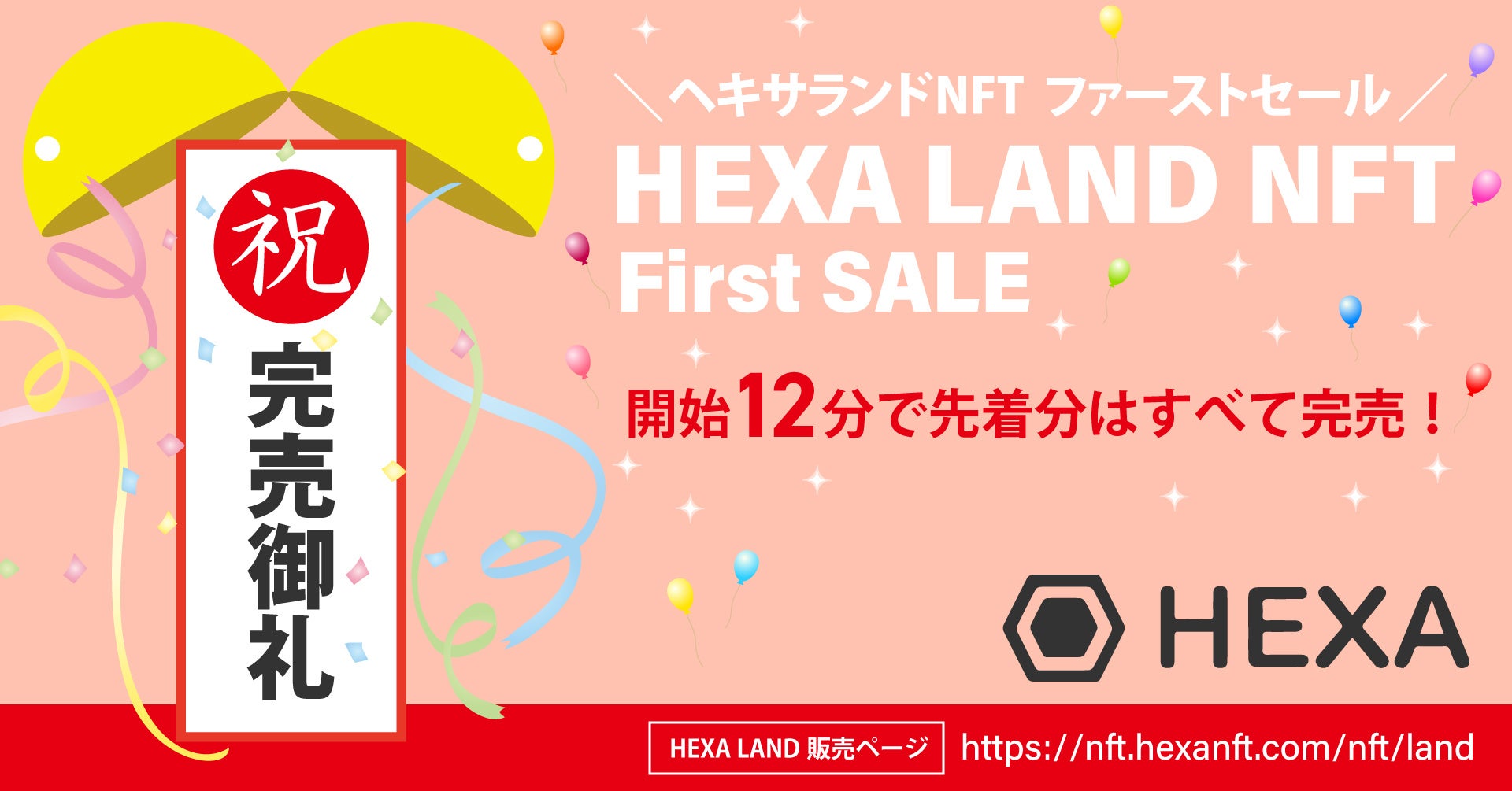 NFT発行・販売マーケット「HEXA(ヘキサ)」では、HEXAの発展・成長によってコミュニティみんなが利益を得られるWEB3.0の実現のため、HEXA LAND NFT(ヘキサランドNFT)のファーストセールを行いましたが、先着販売分は開始12分で完売となりました!
