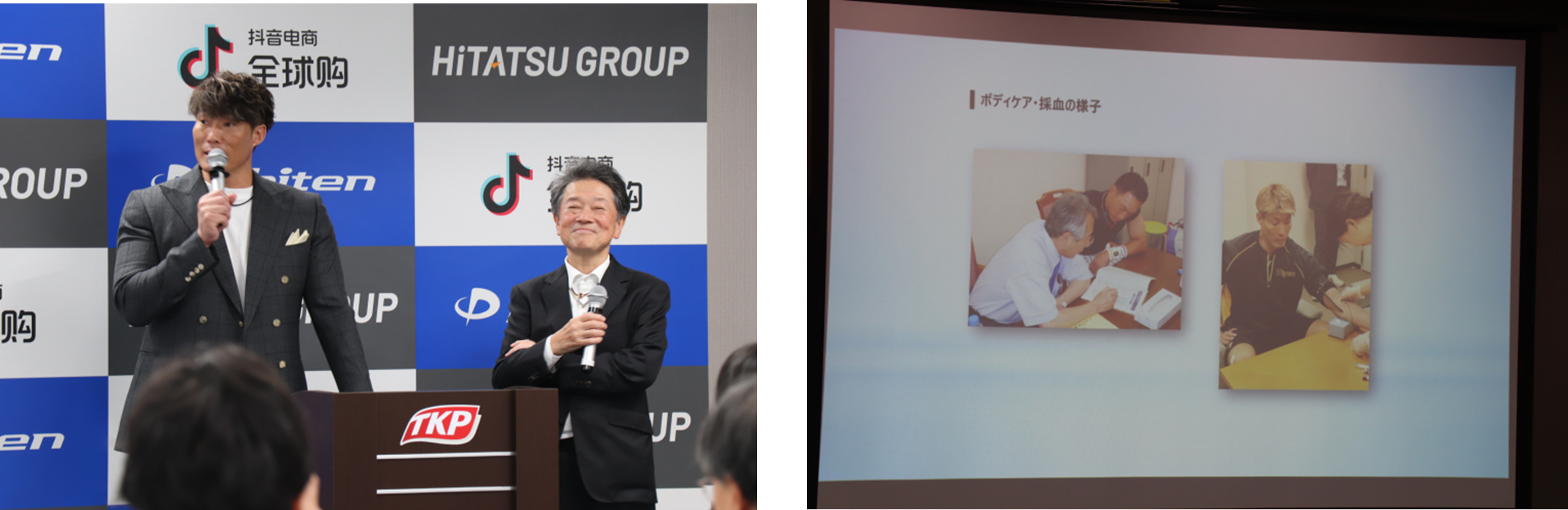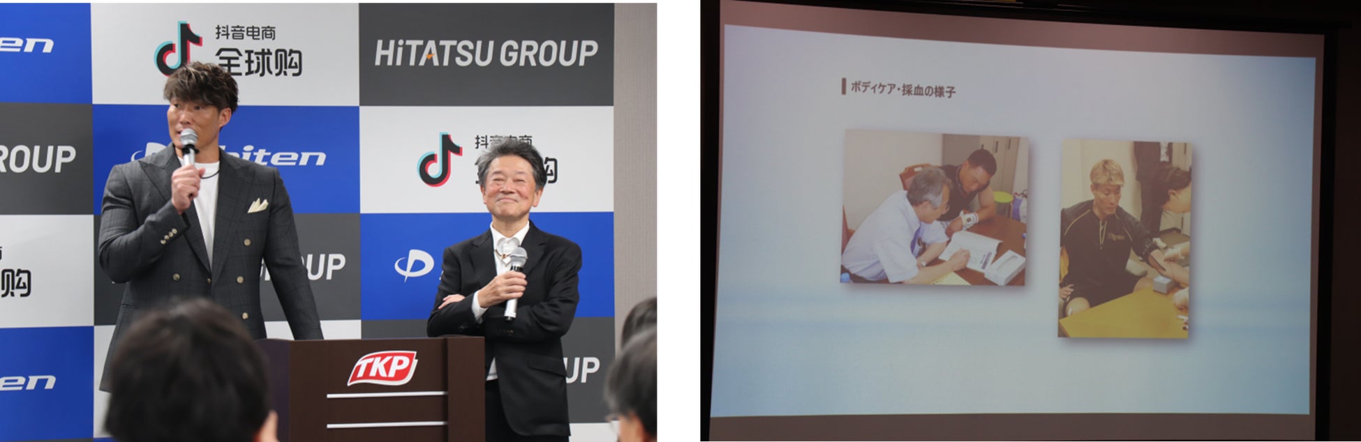 事業開始に際し、この度10月25日(水)に報道関係者向け合同記者発表会を開催。日辰、ファイテン、抖音電商全球購 (Douyin EC Global)の3社が登壇し、各社の代表からそれぞれの視点にて本事業の展望等を発表しました。また、特別ゲストとして阪神タイガース等で活躍した元プロ野球選手の糸井 嘉男氏をお招きし、現役時代から続くファイテンとの貴重な思い出や自身の経験などについてトークセッションを行いました。
