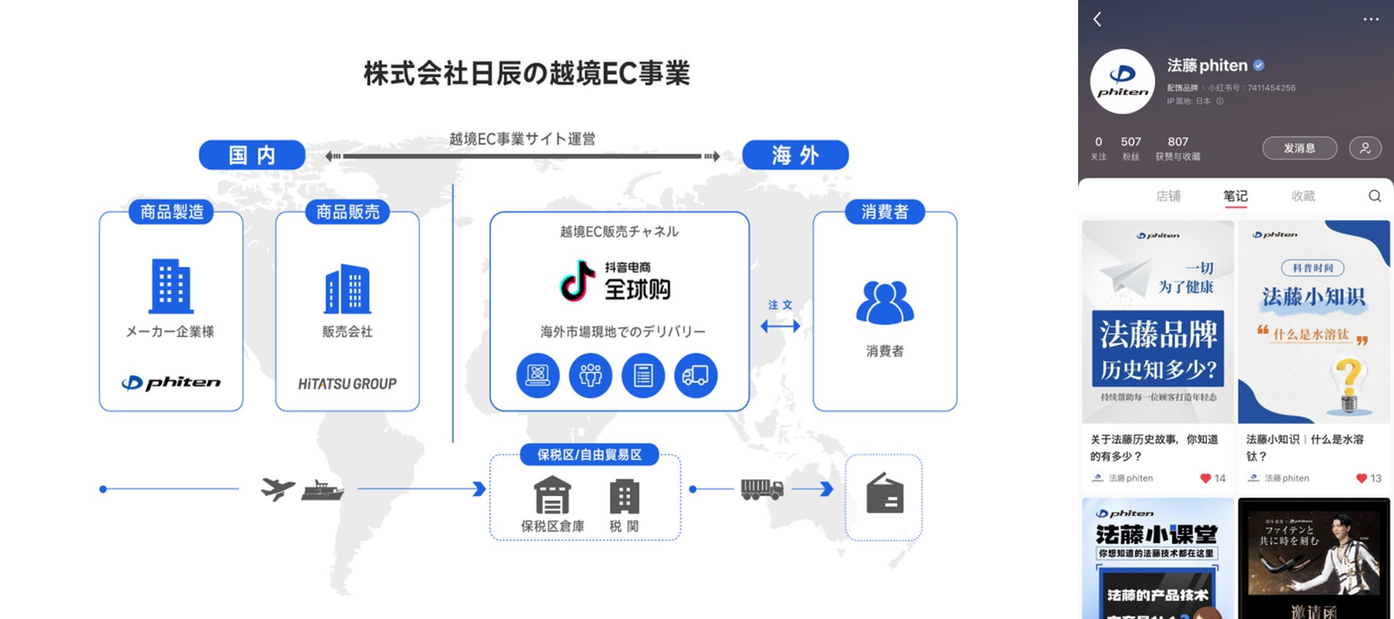 中国でのボディケアブームの中、初年度で2億円の売り上げ規模を目指す日辰グループと提携。「独身の日(11月11日)」に向け、抖音電商全球購(Douyin EC Global)等で展開をスタート