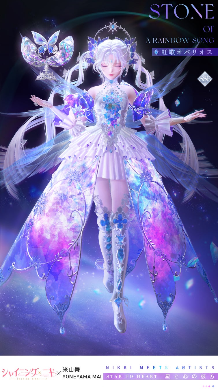 イベント限定ガチャで米山舞さんがデザインした新作セットコーデ『虹歌オパリオス』、『虹夢スペクトル』が登場します。 詳細はゲーム内よりご確認ください。