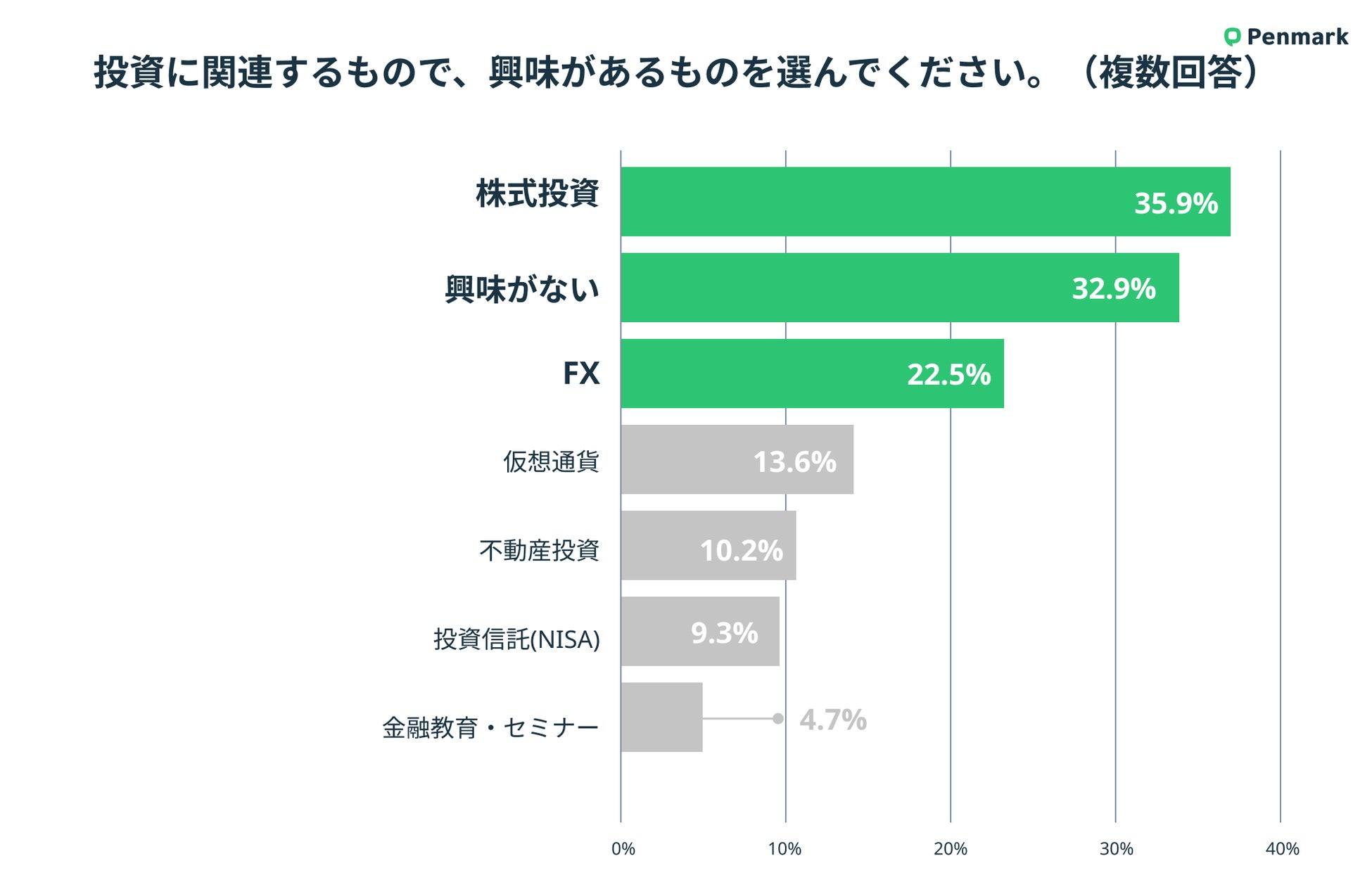 高校生が興味を持っている金融商品は、株式投資(35.9%)が最多