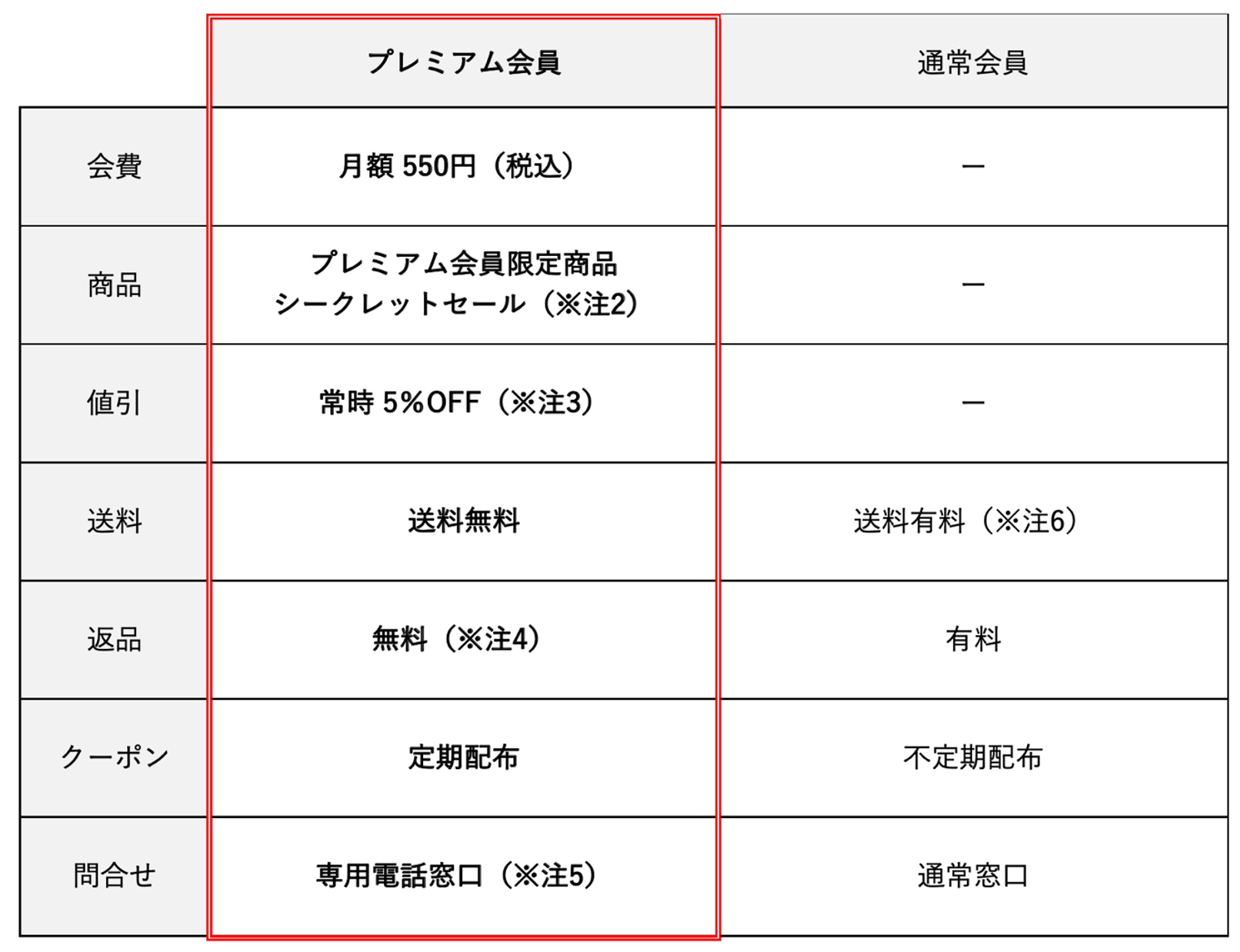 新たに「プレミアム会員」制度では、購入時の常時5%OFF、送料・返品送料無料、会員限定の