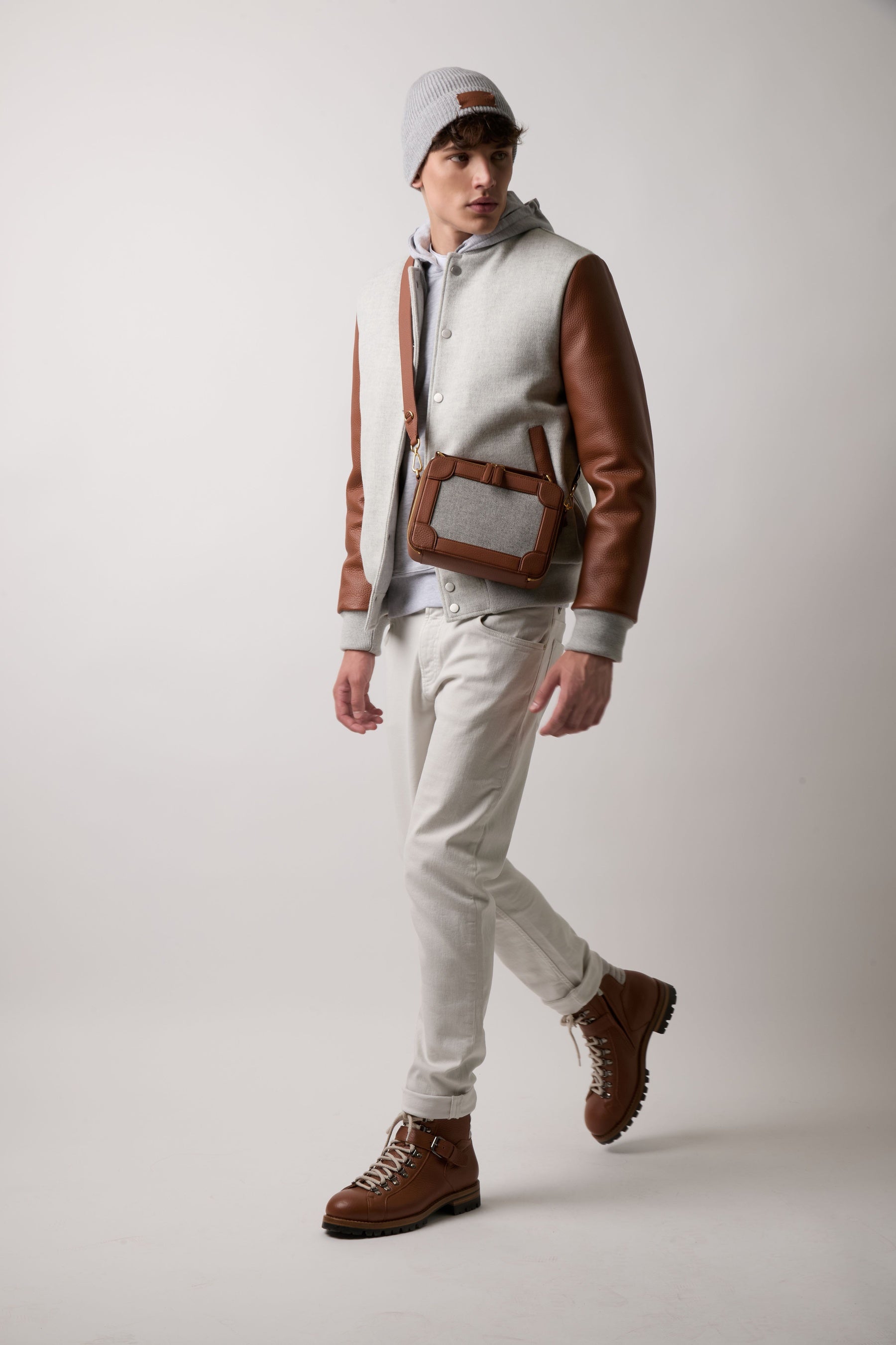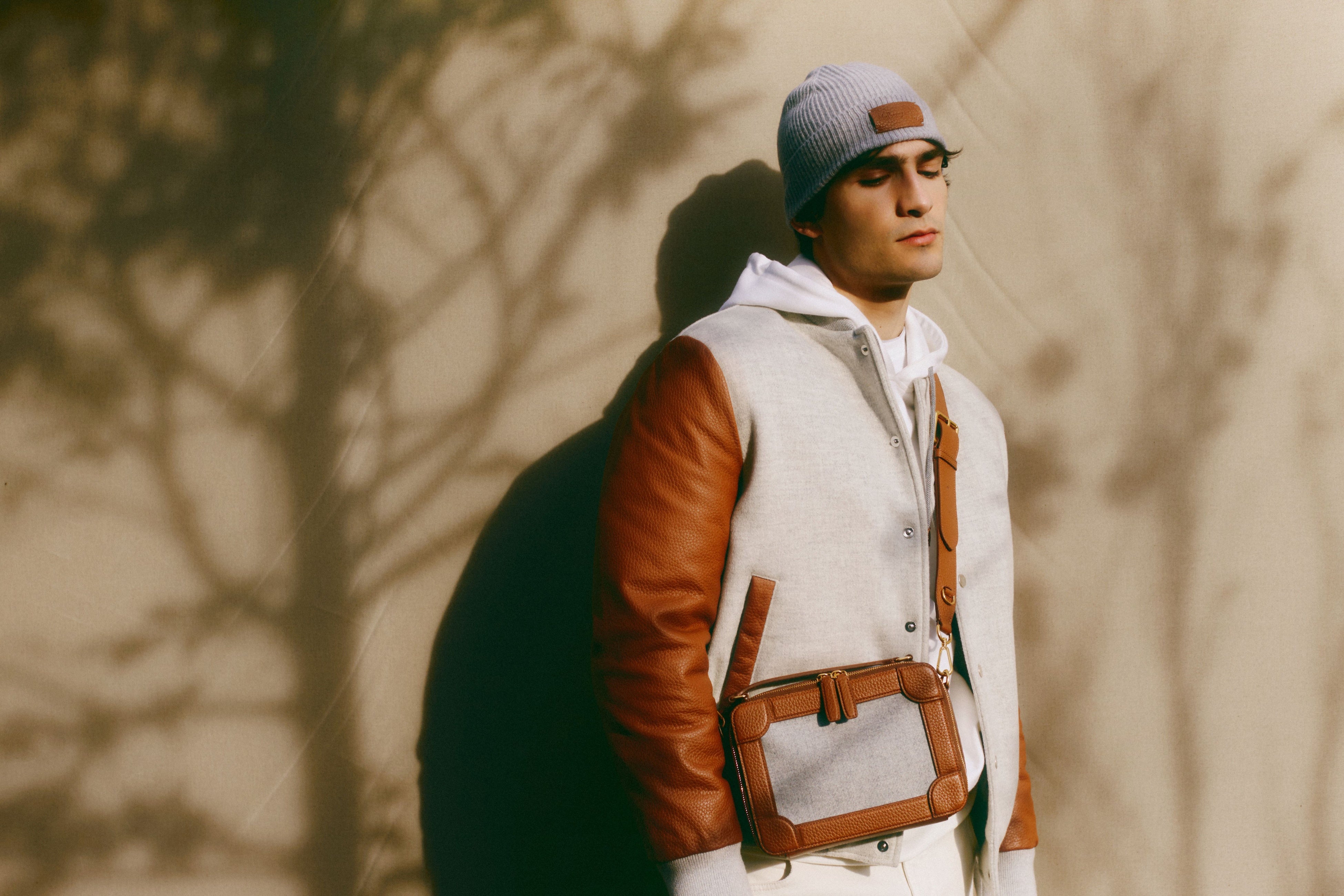 ブルゾン297,000円、パーカー83,600円 ニットキャップ27,500円 *バッグのお取り扱いはマルベリー各店