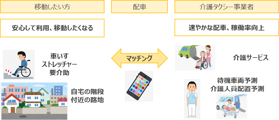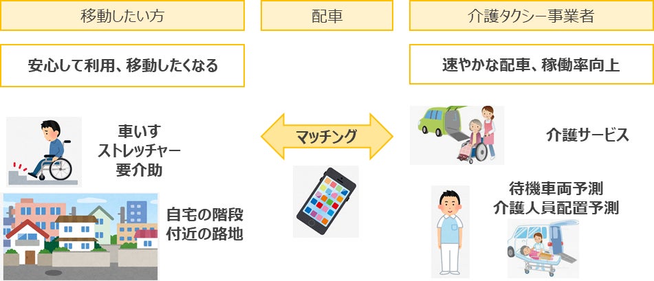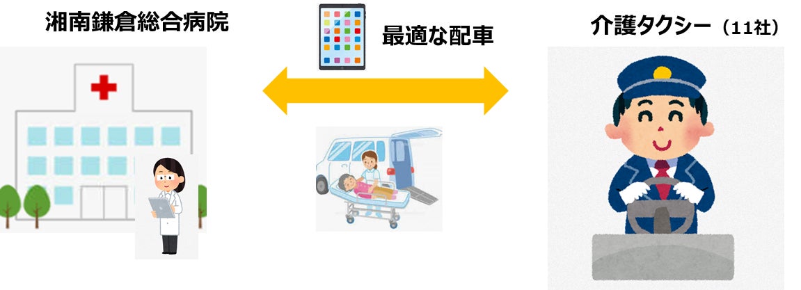 第一段階として医療法人徳洲会湘南鎌倉総合病院を中心に、病院、患者、介護タクシーの利便性に資する最適な配車を目指す実証実験を開始しました。アイネットは、配車ソリューションおよびアプリを提供します。これにより、病院における患者帰宅対応の効率化、患者の待ち時間の削減、介護タクシーの速やかな配車を目指し、アプリの効果を検証し、実装に向けた課題を抽出し、解決策を検討していきます。