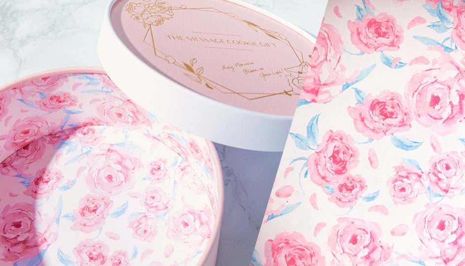 ・ギフトボックス:箱の内側にはエレガントなピオニーが広がった、上品なお箱に入れてお届けします。箱には「May flowers bloom in your life!(あなたの人生に花が咲きますように)」というメッセージを入れています。まるで花束を贈っているかのようなギフトです。