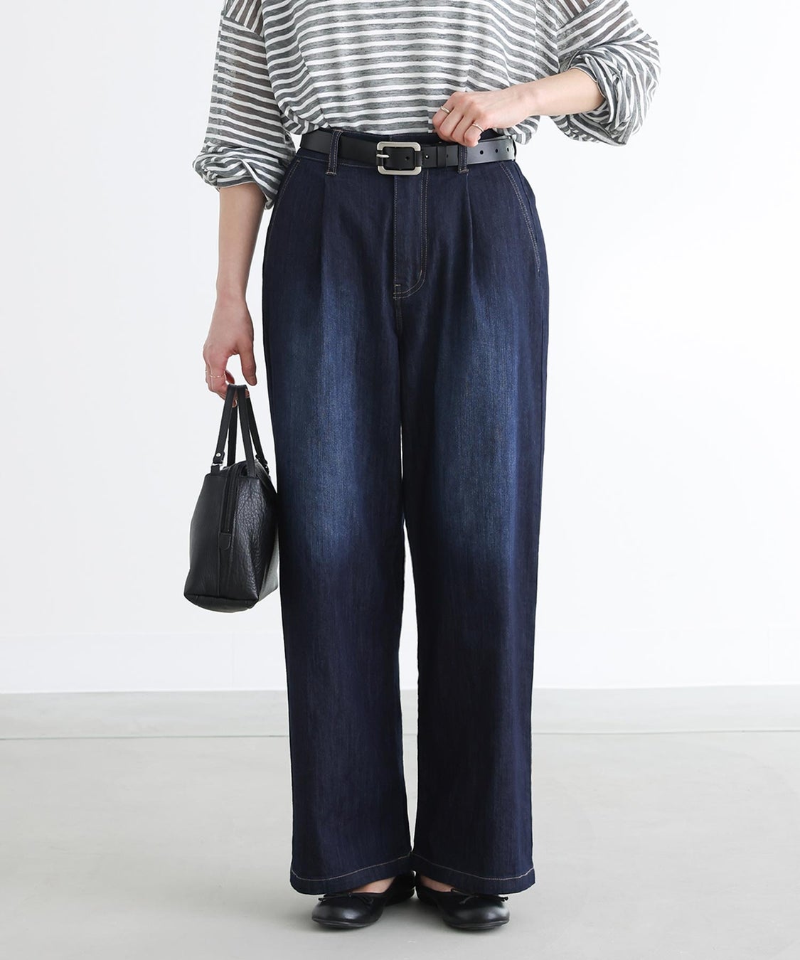 脚をキレイに見せてくれるオリジナルパターンのワイドストレートデニムです。