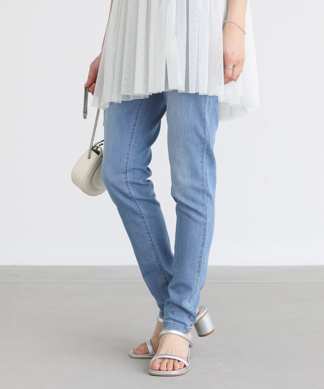 すっきり見せるこだわりシルエットが魅力の冷感デニムレギパンです。
