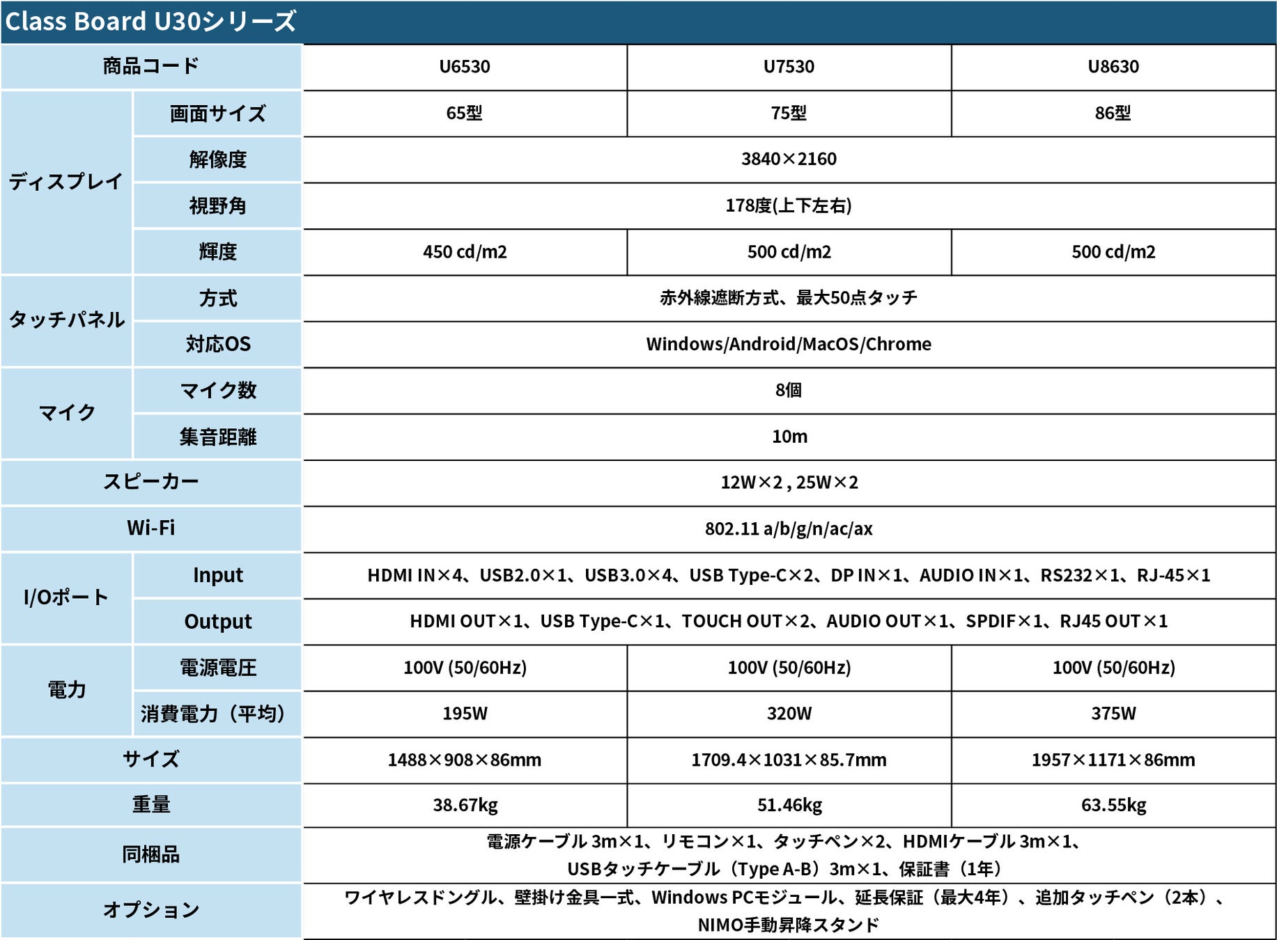 ナイスモバイル Google EDLA認証取得の教育用電子黒板「Class Board U30シリーズ」を発売