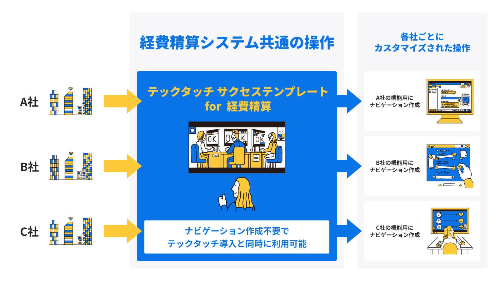 経費精算システム上に「テックタッチサクセステンプレート for 経費精算」を設置した際のイメージ図