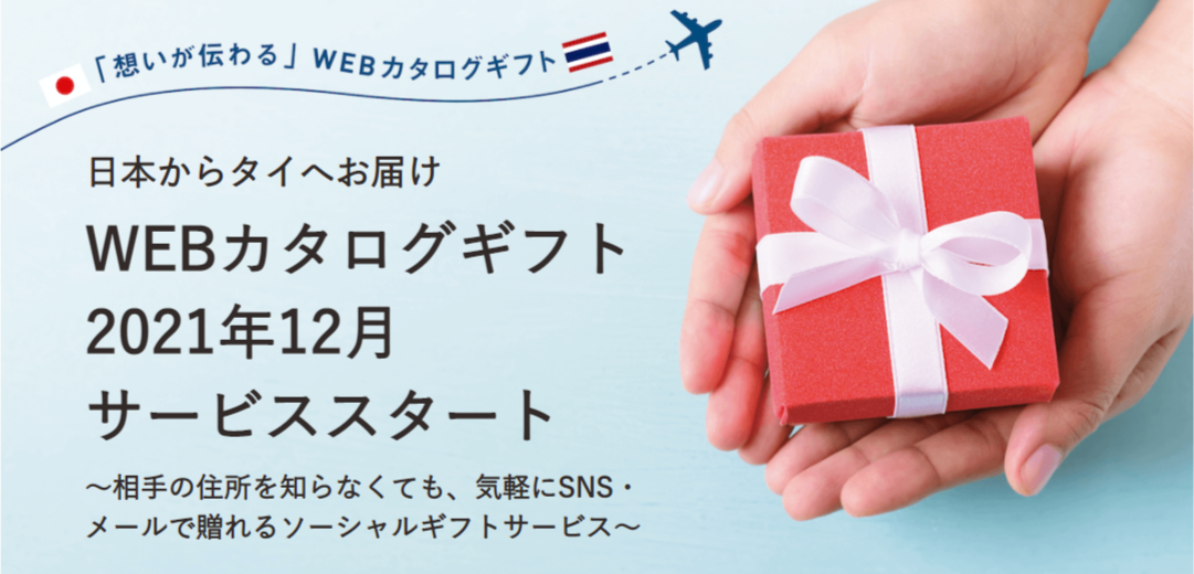 株式会社ギフトパッド(大阪府大阪市、代表取締役社長: 園田 幸央、以下ギフトパッド)は、2021年12月より、タイ在住の日本人の方を対象としたWEBカタログギフトサービス「タイにお届けするギフトサービス」を開始したことをお知らせいたします。オンラインで完結するプラットフォームから選択した商品を、日本から国際郵便でタイまで発送します。日本在住の日本人がサイトから購入し、タイ在住の日本人へギフトを贈ることも可能です。現在4コース、約500点の商品を取り揃えており、ご利用シーンに合わせたカタログを選択可能です。日本語サイトによるサービス提供のため、現在はタイ在住の日本人や日本語の読み書きが十分にできる外国人の方を対象としておりますが、今後は海外向けの事業展開を拡大し、2026年までに15億円の売り上げを目指します。
