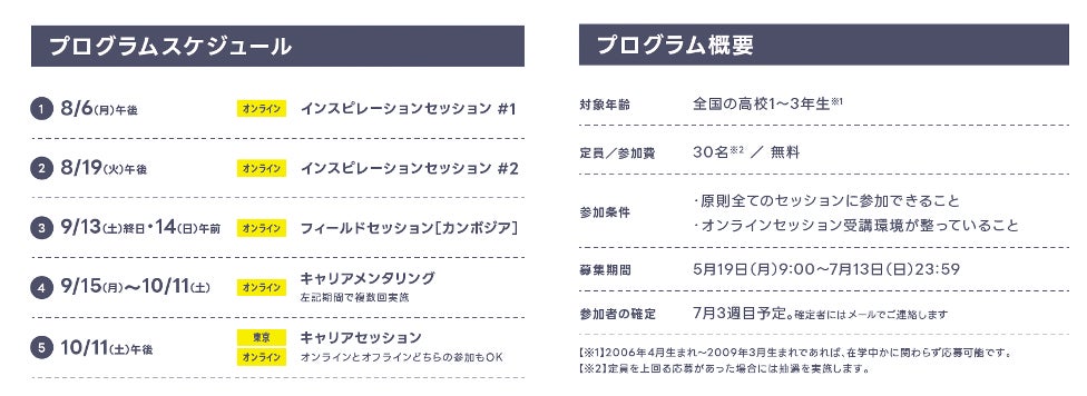 本プログラムの具体的なプログラムスケジュールと応募概要など、詳細については特設サイトをご覧ください。