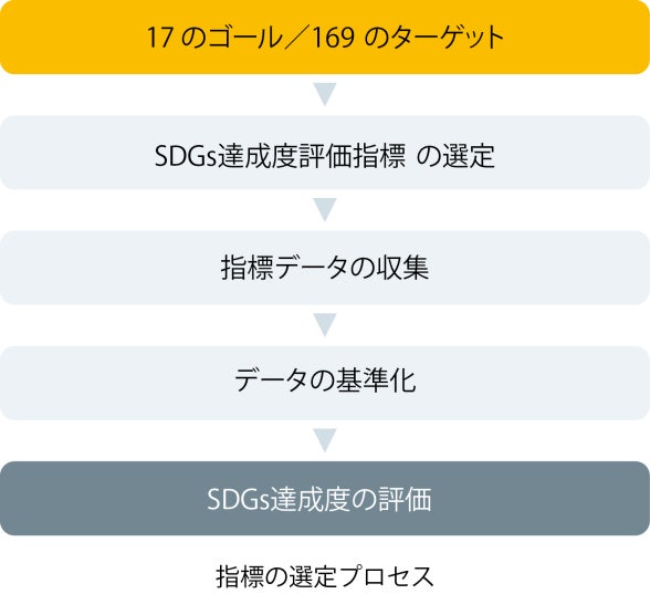 SDGs達成度評価指標は、日本の地方自治体の統計状況や特性に合わせて総合的かつ横断的にSDGsの達成状況を評価する目的で開発されたものです。
