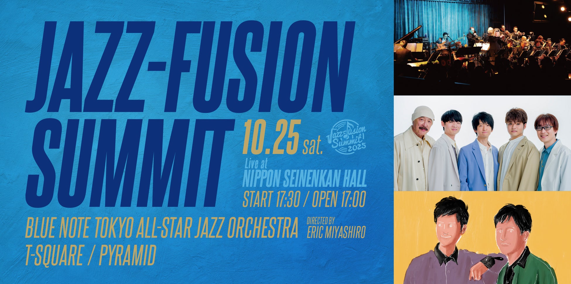日本のジャズ・フュージョン界を代表するトップ・アーティストが集結!豪華ラインナップとバンドの枠を超えたスペシャル・セッションで大反響を呼ぶ「JAZZ-FUSION SUMMIT」の開催が今年も決定!季節を秋に、会場を日本青年館ホールへと移し、気分も新たに行われる。第3回目となる今年は、日本のジャズ・フュージョン界を代表する豪華3組が登場。日本屈指のギタリスト/プロデューサーの鳥山雄司とトップ・ドラマー神保彰によるスーパー・ユニットPYRAMIDが初登場するほか、2023年の初回から出演するこのイベントの“顔”的存在のT-SQUAREは新メンバーを迎えた新体制で出演。さらにブルーノート東京オールスター・ジャズ・オーケストラ directed by エリック・ミヤシロが迫力のビッグバンド・サウンドを届ける。時代を超えて愛される名曲の数々、白熱の超絶技巧、華麗なバンド・アンサンブルを堪能し、ジャズ・フュージョンの魅力に酔いしれるファン待望の一日となる。
