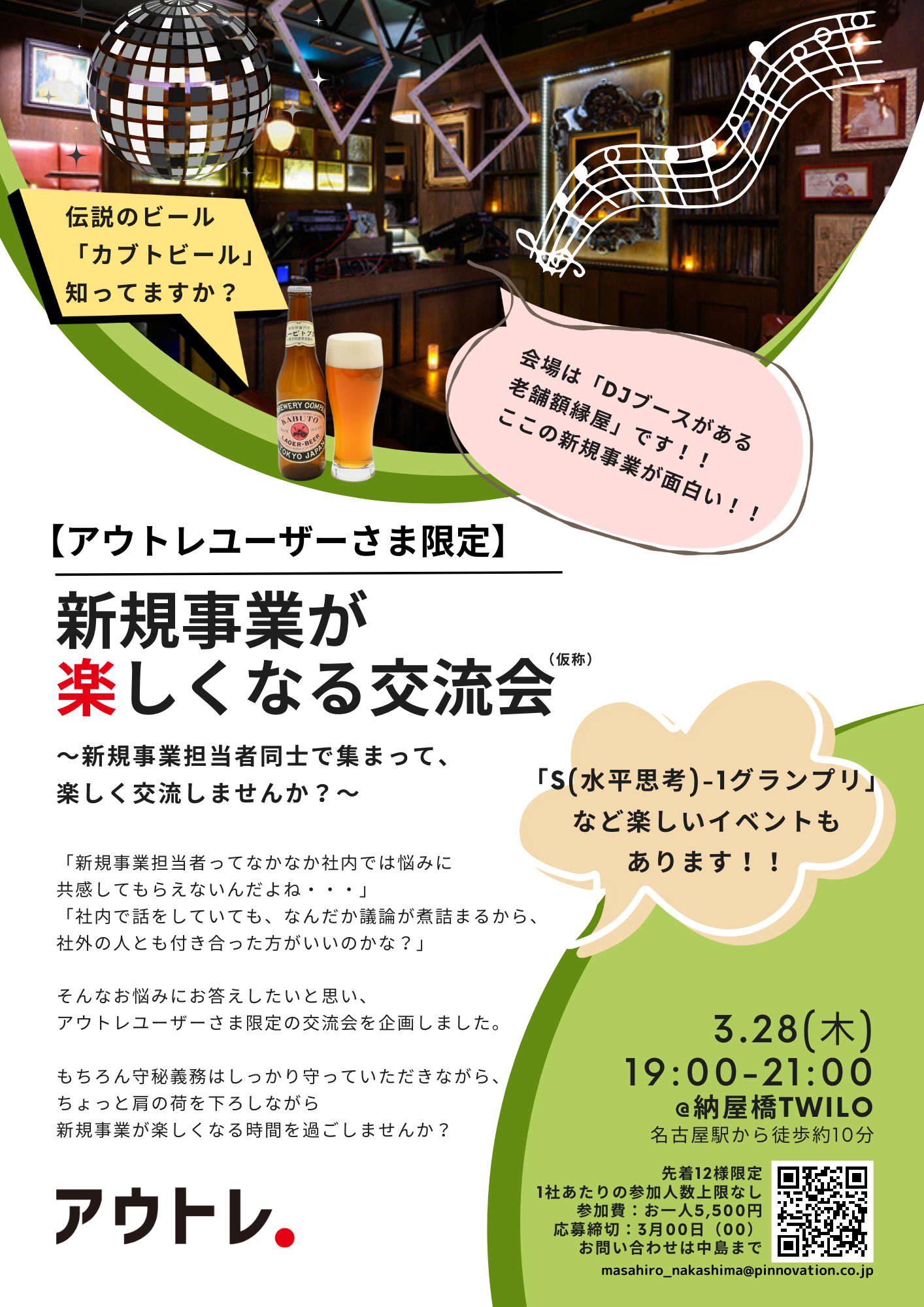 【初開催】先着12名のクローズドイベント。アウトレユーザー限定、新規事業担当者交流会を納屋橋TWILOにて実施!