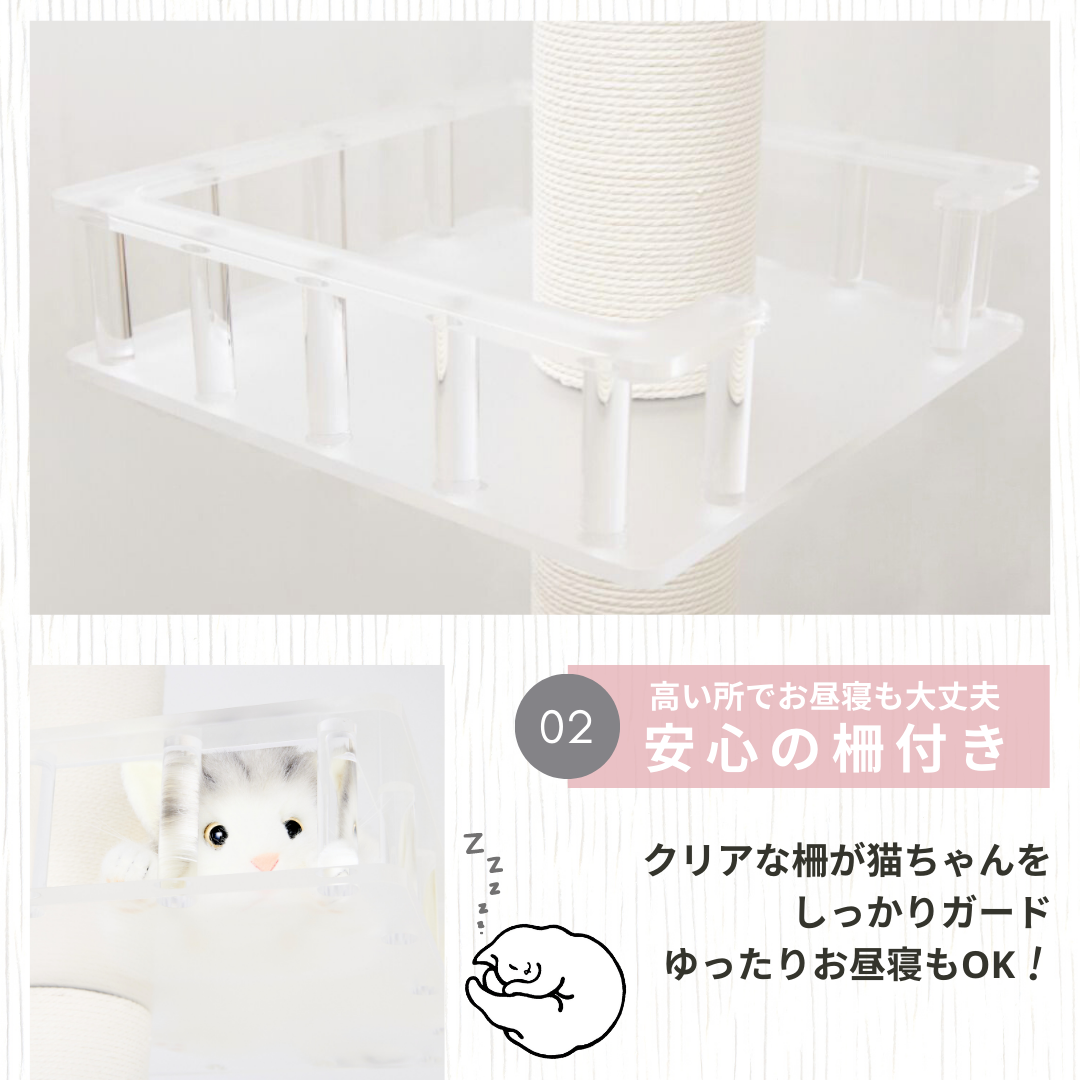 『ジュリニャッタ』同様、猫ちゃんをしっかりガードする柵がついているので、高い場所でのお昼寝も大丈夫♪