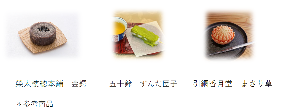 秋色庵大坂家(東京)、五勝手屋本舗(北海道)、甘精堂本店(青森)、乃し梅本舗佐藤屋(山形)、香雲堂本店(栃木)、百花園(新潟)、引網香月堂(富山)、板屋(石川)、松岡軒(福井)、巌邑堂(静岡)、きよめ餅総本家(愛知)、田中屋せんべい総本家(岐阜)、しろ平老舗(滋賀)、二條若狭屋(京都)、千本玉壽軒(京都)、本まつばや(大阪)、蜜屋本舗(広島)、彩雲堂(島根)、寳月堂(香川)、西川屋老舗(高知)、北島(佐賀)、梅月堂(鹿児島)(参加店舗は 変更する場合があります。)