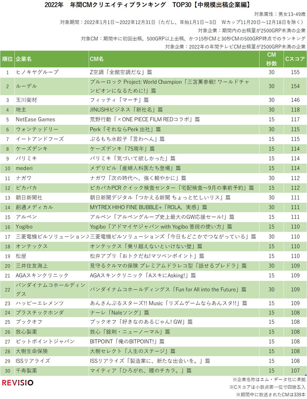 ■2022年 年間CMクリエイティブCスコアランキングTOP30