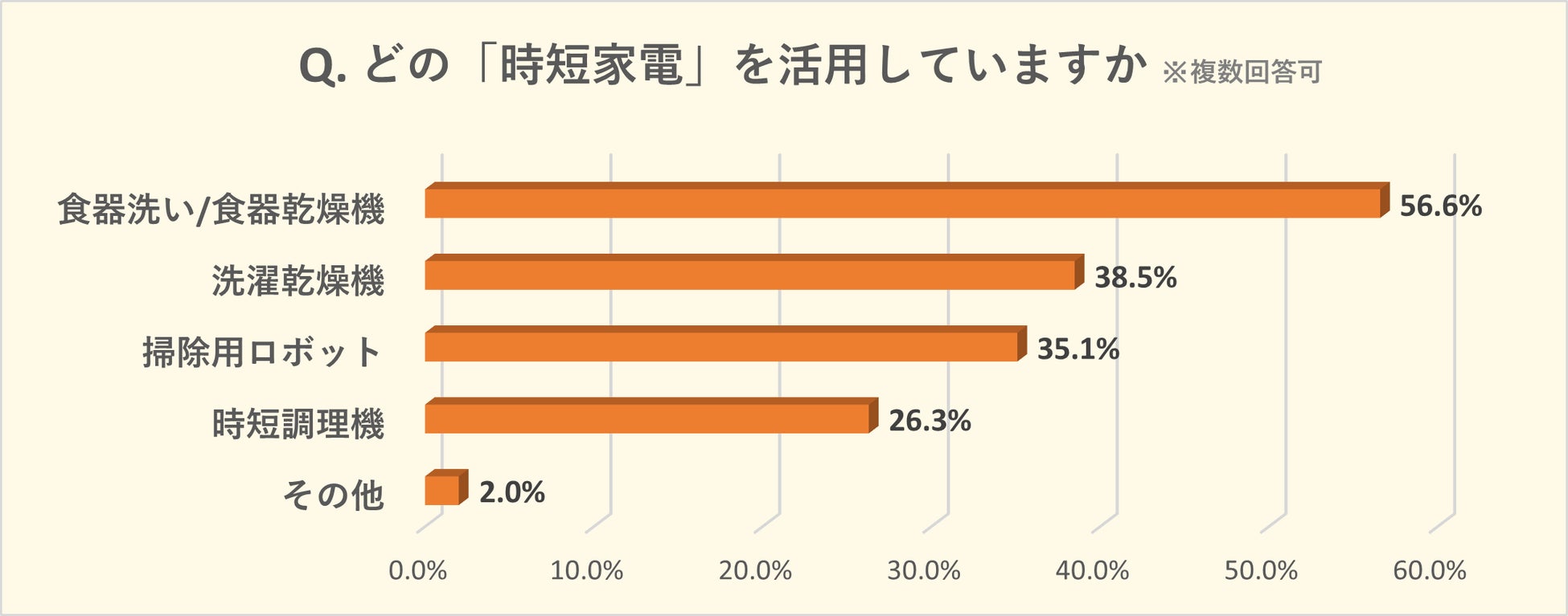 <Q. どの「時短家電」を活用していますか。> 複数回答可、Q4で「はい」と答えた方のみ回答
