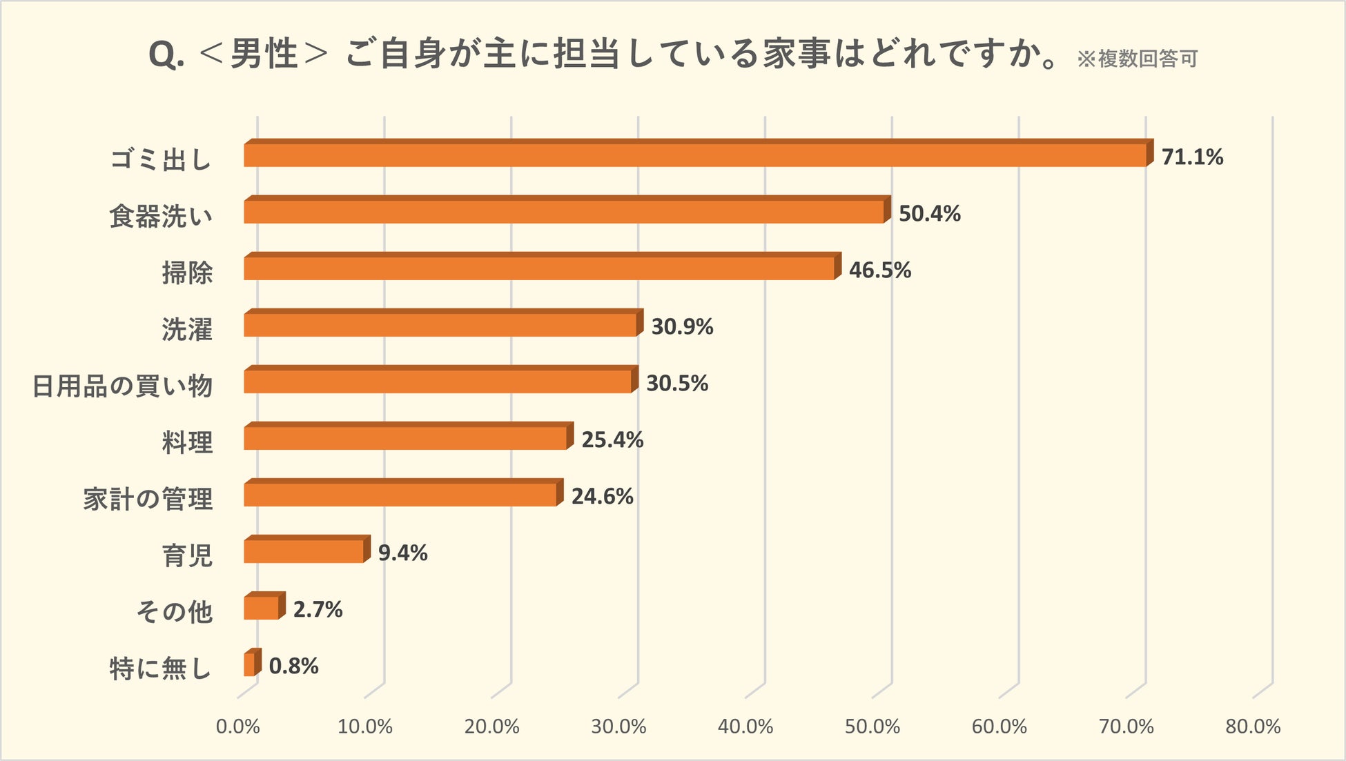 「自宅の家事」に関する実態調査|家事分担では「ゴミ出し」のみ男性が女性を上回る