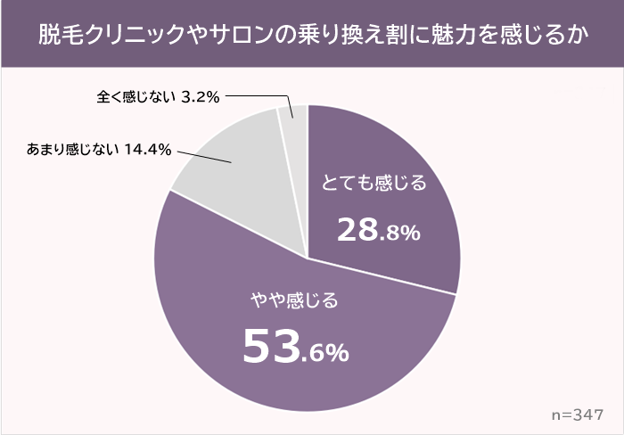 脱毛クリニックやサロンの乗り換え割に魅力を感じる人は82.4%