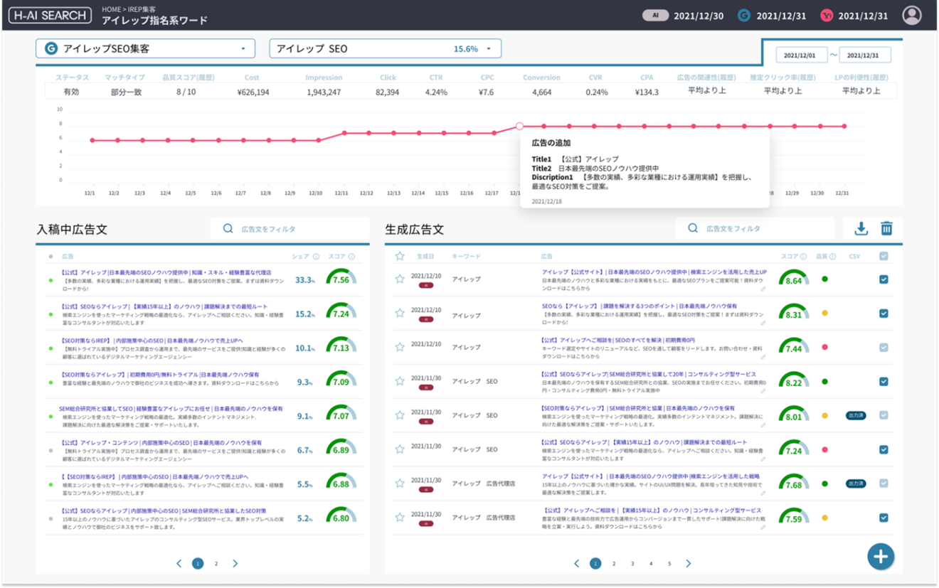 アイレップ、検索連動型広告の広告テキストを自動生成・効果予測するAIソリューション「H-AI SEARCH」の提供開始